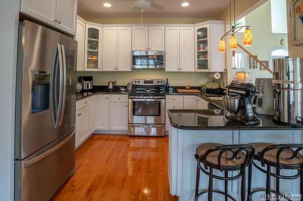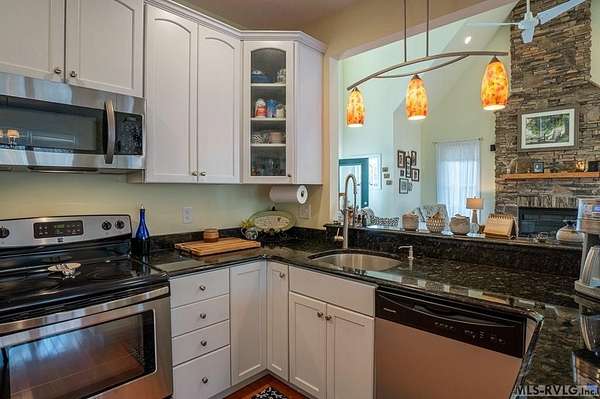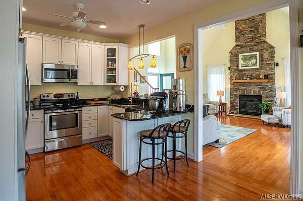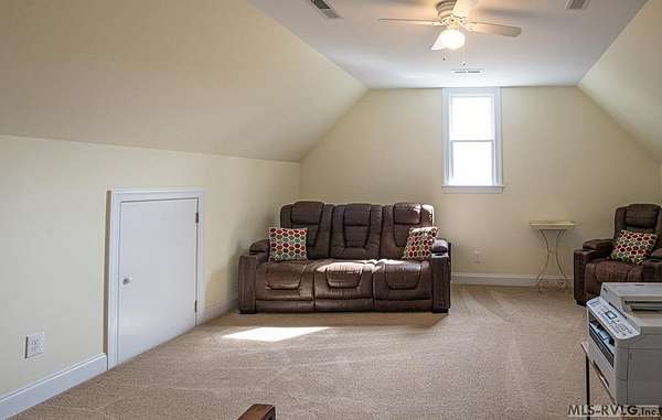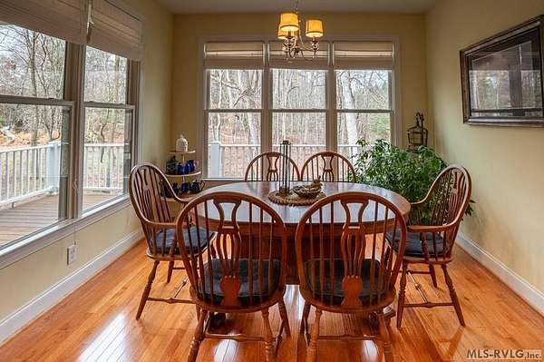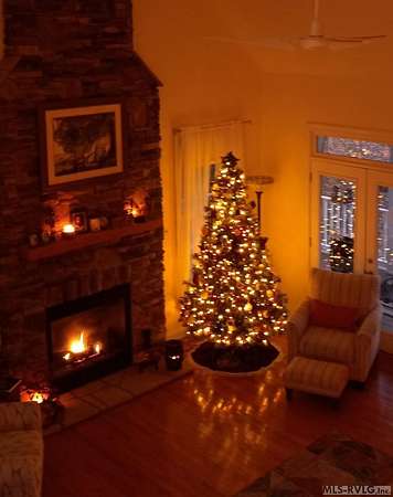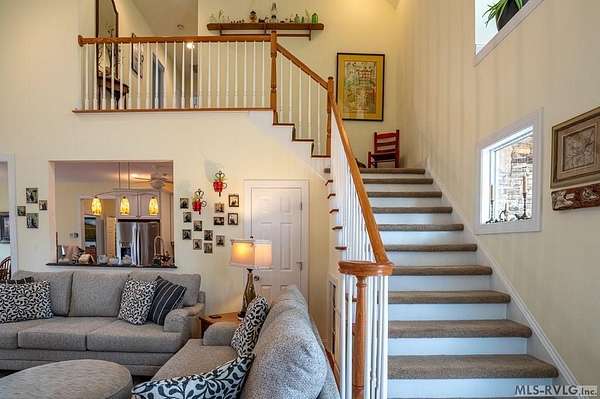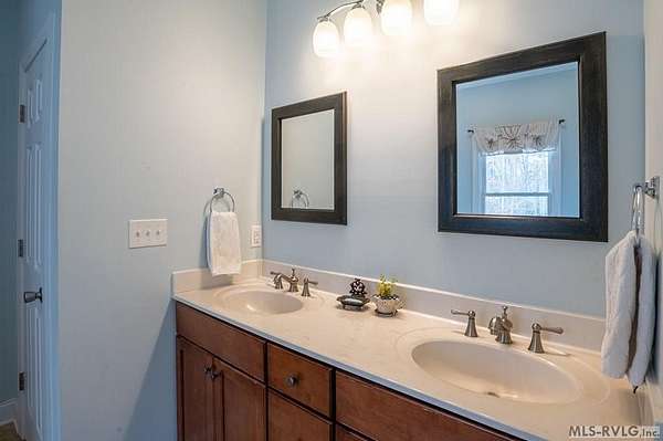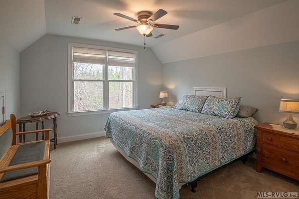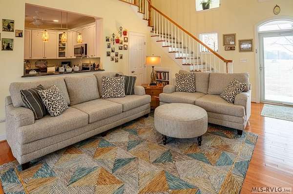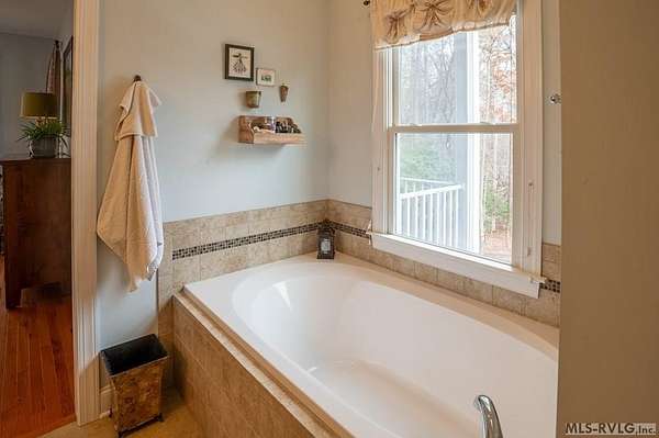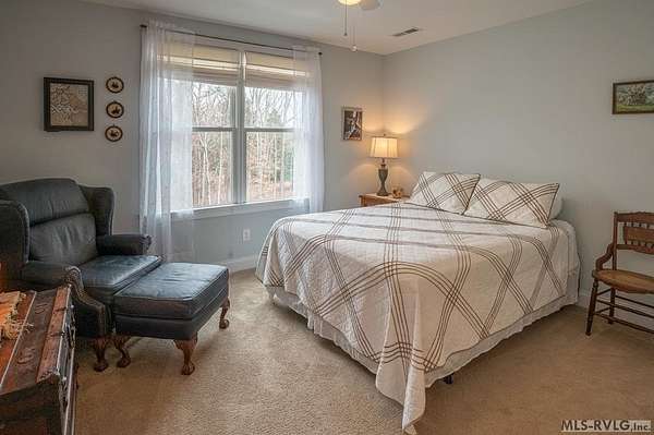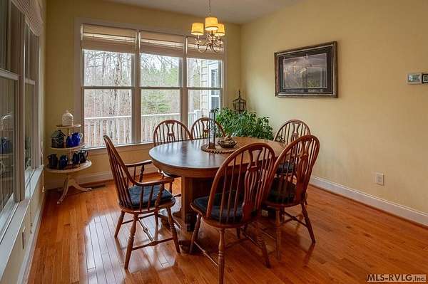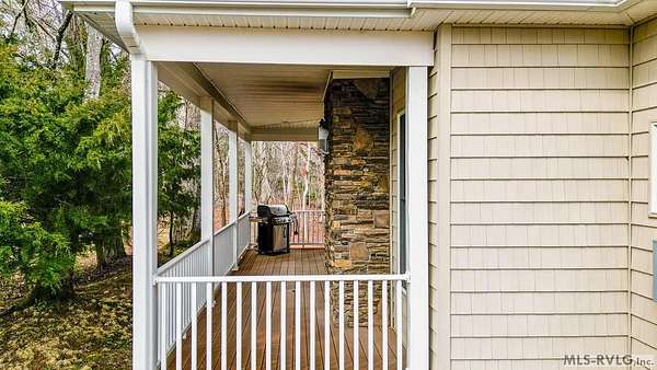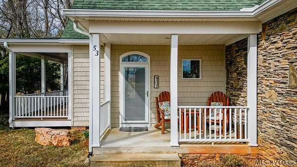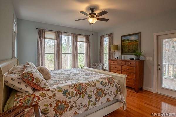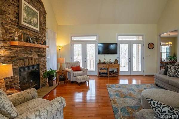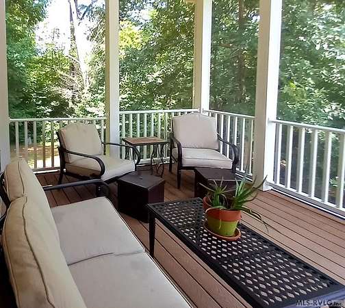 Welcome to Merifield Acres, a peaceful lake community alongside Buggs Island/Kerr Lake. Your new home is stunning in both its features and craftsmanship. This gorgeous home features a large 1.52 acre double lot, 3bd/2ba, and nearly 1,800 sq. ft. with a wraparound deck. Inside, vaulted ceilings in the living room makes an impression with a gorgeous floor-to-ceiling stone fireplace with gas logs. The hardwood floors flow across the main level and natural light fills the space, creating an inviting atmosphere. The first-floor primary suite provides convenience, privacy and access to a screened porch overlooking the peaceful woods; a perfect place to enjoy your morning coffee and breathtaking sunrises. The ensuite bath has double vanities, soaking tub, shower, and walk-in closet. The laundry, half bath, and two-car garage entry round out the main level. Upstairs, has 2 spacious bedrooms, 1 bath, and bonus room ideal for a office, playroom, exercise room, or guest space. The front porch is a place to enjoy bald eagles that soar above the private airfield. The community dock and park are just around the corner. Historic Clarksville is minutes away. Begin your Lake Life dream today!