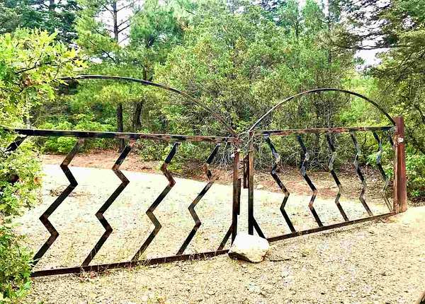 Highway north to Arroyo Seco then right onto El Salto Road. Drive to Paw-a-Suki On left. Follow to metal entrance gates on right. Park in front of gates. Across the street from driveway #50. Several other options also. Call me to discuss.