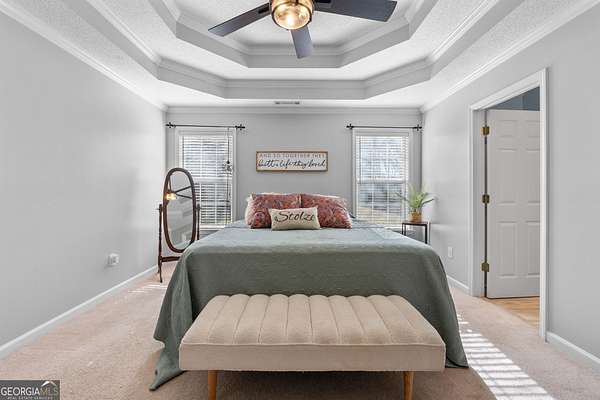 - Bookcases, Double Vanity, In-Law Floorplan, Master On Main Level, Roommate Plan, Separate Shower, Tray Ceiling(s), Walk-In Closet(s)