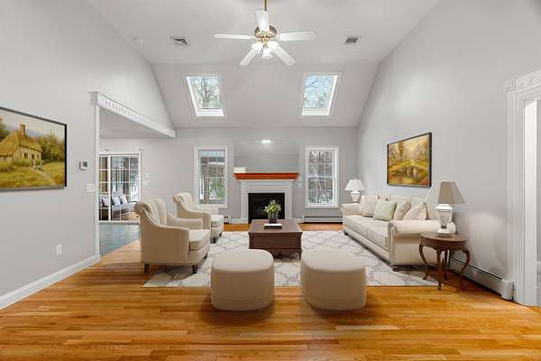 This STUNNING HOME has just been UPDATED including NEW Carpet, Gleaming Hardwood Floors, NEW Bathroom Flooring, FRESH Paint, NEW Lighting Fixtures, NEW SS Appliances...it's A MUST SEE! Expansive ranch style home with a FABULOUS layout. The generous sized Primary Bedroom Suite is on the 1st FLOOR and has its own Full Bath and Walk-In Closet. The Eat-In Kitchen features Granite Counters, Plenty of Cabinets and Brand New Stainless Steel Appliances. It overlooks the Sunroom and is open to the Enormous Family Room with COZY gas fireplace and soaring ceilings. There is also a separate dining and living room both drenched in sunlight. Down the hall are two additional bedrooms and a full bath. There is a bonus area above the mudroom that would make a great in law suite, rec. room or private home office. It features a 4th bedroom/office, full bath and small bonus room which was a kitchenette. Need more space? The huge, unfinished, walkout basement is a blank slate and ready for a home gym, teen hangout, man cave, etc. All this on a 2.5 acre+ level lot in a great neighborhood! Don't delay! Schedule your private showing today!