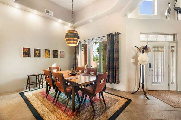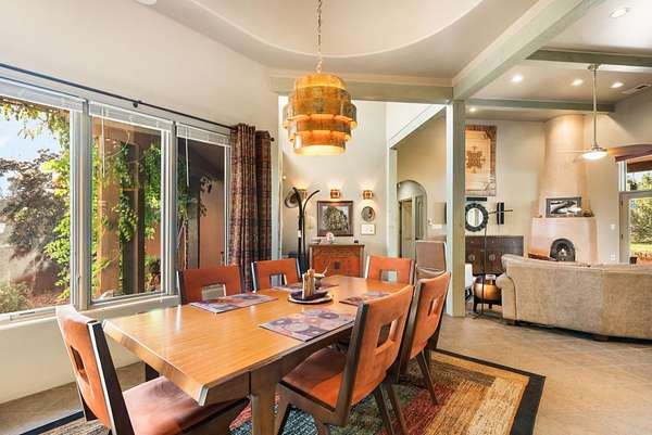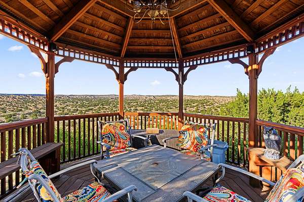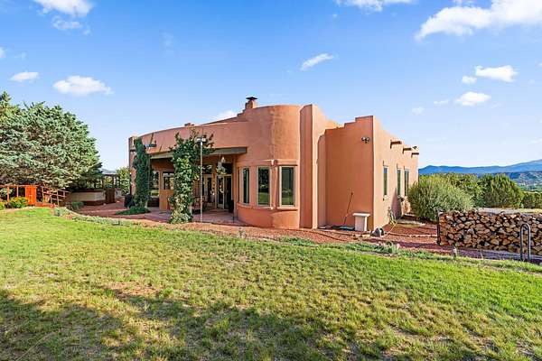 Perched Above It All | 53 Private Drive, Medanales, NM Set atop a quiet mesa with nearly 360 degrees views of Northern New Mexico's iconic landscape, this soulful 3-bedroom, 2-bath Southwestern retreat rests on just under 9 acres of open sky and timeless beauty. Inside, the home blends rustic charm with clean comfort-Santa Fe-style smooth plaster walls, exposed wood beams, classic tile floors, and warm light moving through every space. With 2,295 square feet, the layout feels open and thoughtful, and a detached studio offers the perfect setup for remote work, a creative retreat, or private guest quarters. High-speed internet and refrigerated air ensure you're both off the grid and on the grid. From the front portal, the views stretch endlessly-from the Rio Chama Valley to the jagged outline of Cerro Pedernal, the mountain Georgia O'Keeffe painted again and again. There's a reason artists, writers, and seekers have long been drawn to this land-it stirs something deep. Whether you're sipping coffee at sunrise under your gazebo, sketching the shifting light, or heading out for a day trip to Abiquiu Lake, Ghost Ranch, or Ojo Caliente, life here moves slower, feels fuller, and breathes easier. Santa Fe is just 55 minutes away, Los Alamos about 45, and Taos a scenic 75-minute drive-putting world-class art, culture, and dining within easy reach. This isn't just a home-it's a place to live inspired.
