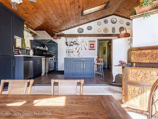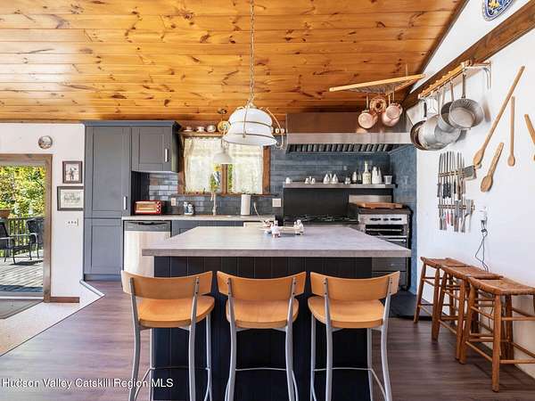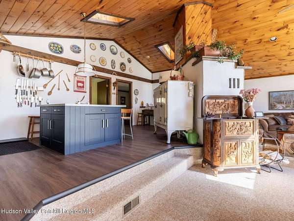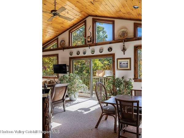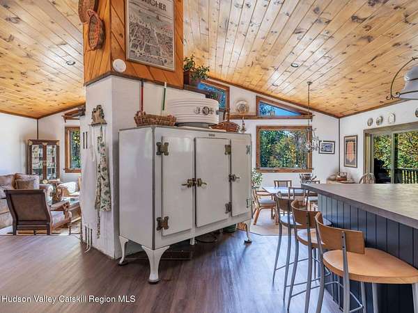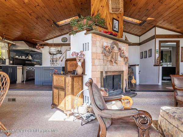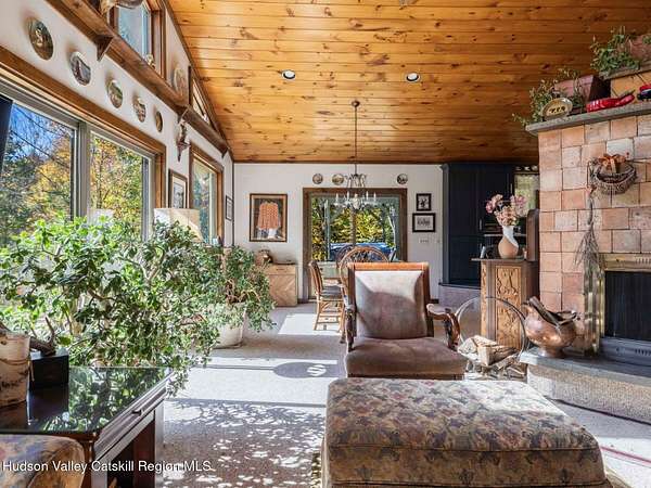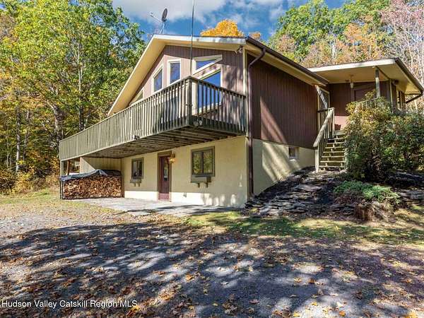 Check out this ready-to-move-in listing. Relax to the sound of chirping birds while sinking into the oversized hot tub on the deck and the expanded wrap-around deck, while barbecuing and sharing drinks with your friends in complete privacy. This home was custom built by a local builder and has never changed owners until now. The home features modern updates throughout while maintaining its charm and efficiency. This home has so much to offer: a massive wood-burning fireplace in the open living-dining-kitchen area flooded with natural light through large Andersen windows and sliding doors, a commercial-size gas cooking stove for the inner chef in you, a massive classic vintage refrigerator-freezer unit, a large, very handy center kitchen island, three large bedrooms and two full modern baths, a full finished and functional above-ground lower level hosting one bedroom and one full bath, laundry room, and utility room where the dual furnace is located. The wood and oil economical furnace and hot water heater are gas operated, as is the outdoor hot tub. Multiple large closets and storage areas are available for your ski equipment and belongings. Make this house your year-round escape from the woes of the world. Located in Jewett, close to downtown Windham and Hunter, with easy access to all the lively places for entertainment, food, art galleries, theaters, sports, hiking, fishing, boating, winter skiing, and pristine lakes and hiking trails. A 3D Walkthrough Tour is available in the digital Lookbook or by request from the listing agent.