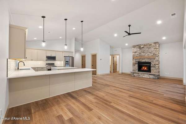 Est $3,995/moMOVE IN READY! The Radiant floor plan offers 2,014 sq ft of well-designed living space on 5 private acres in a gated community in Blanchard, Idaho. This 3 bed, 2 and a half bath home features an open-concept layout with cathedral ceilings, a spacious master suite with walk-in closet, and covered front and back outdoor living spaces. A 3-car garage provides ample space for vehicles and storage. The home is situated on a corner lot for added privacy. Close to Hoodoo Mountain, Mount Spokane, Stoneridge Resort & Golf Course, Lake Blanchard, and Lake San Souci offering year-round outdoor recreation and peaceful North Idaho living.