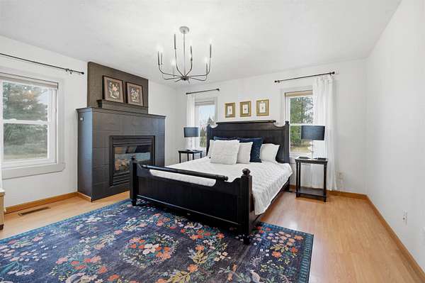 Beautifully renovated 3 BR, 3 BA farmhouse set on 9.8+/- scenic acres in Oshkosh, offering the perfect blend of peaceful country living with easy access to the highway and city conveniences. Spacious front yard, established gardens, fruit trees and a tree-lined border provides privacy and picturesque views in every direction! Inside offers large flex room upon entry w/ gas fp, perfect for all seasons. Dream kitchen boasts newer appliances, countertops, cabinetry adjacent to cozy LR! Retreat to primary BR on main featuring fp, walk in closet, private ensuite. Convenient ff LR! Upstairs find 2 add'l BR w/generous closet space & full BA. Insulated 2 car gar w/ladder leading to huge storage area. Spring will reveal gorgeous landscape for you to enjoy from your porch! 48 hour binding.