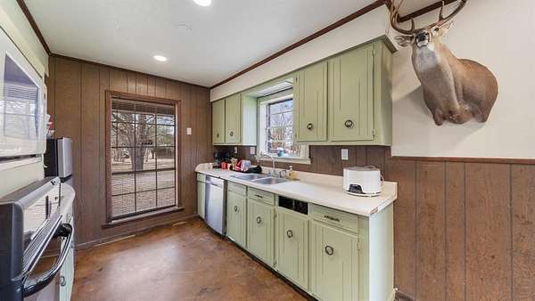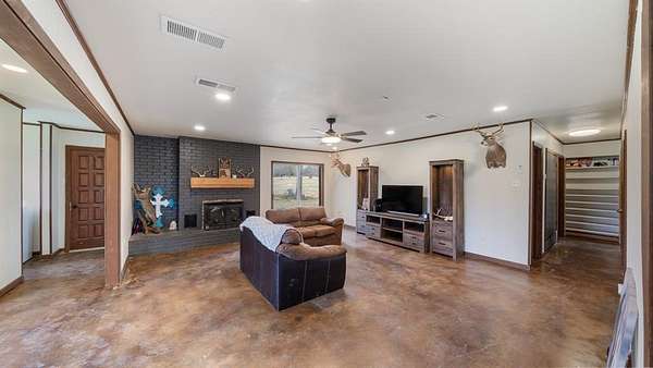 Outside, the land offers a perfect blend of open pasture and mature trees, ideal for ranching, recreational use, or peaceful country living. A barn adds functional space for animals, equipment, or storage.