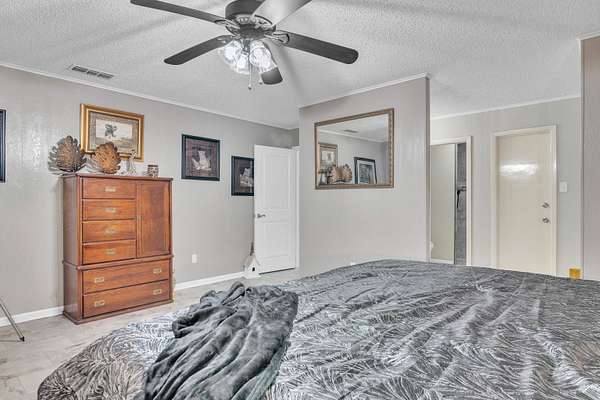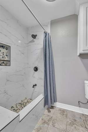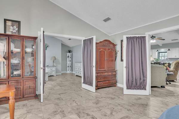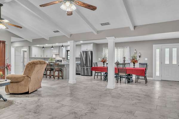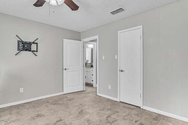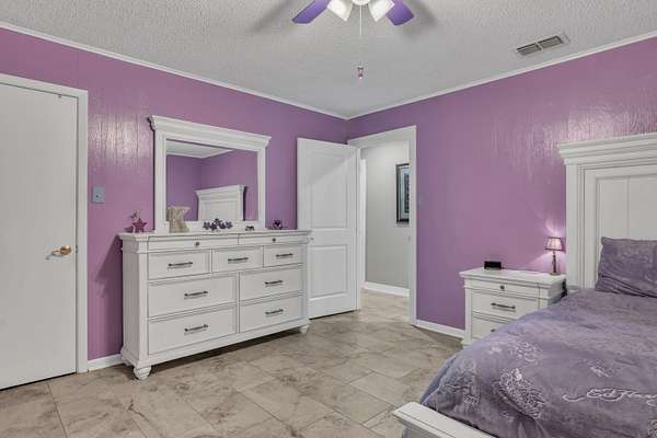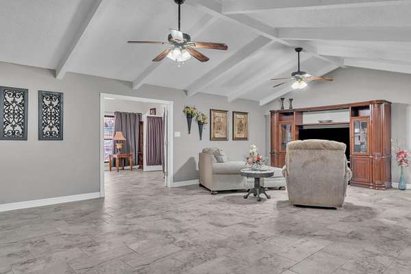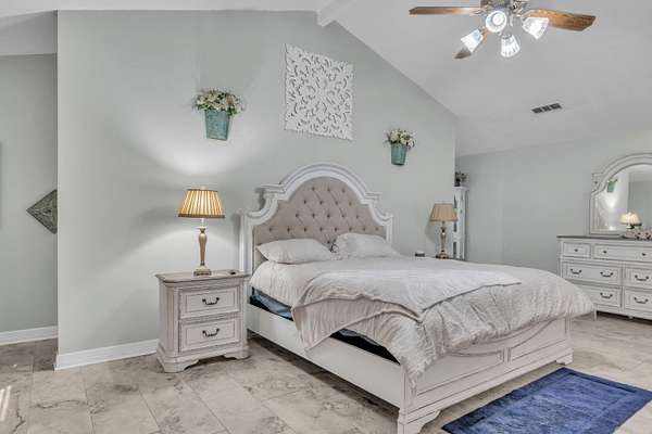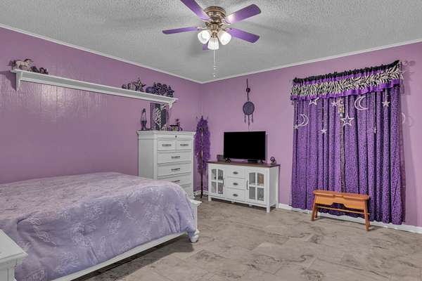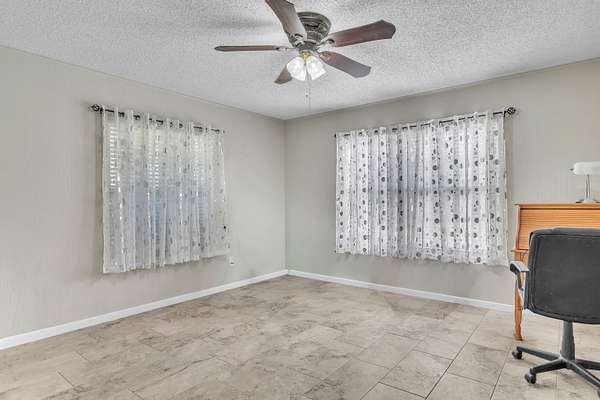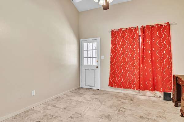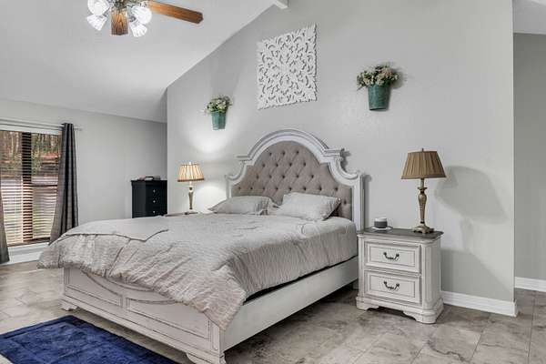 - Ceiling Fan, High Ceilings, Shades/Blinds, Smoke Detectors, Tile Flooring, With Curtains-All