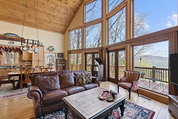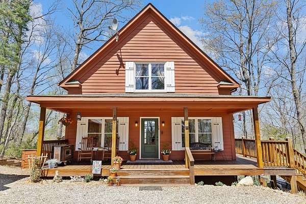 ~Where the Eagles Soar~True North Georgia Mountain Getaway.Perched high on 3.45 acres of mature hardwoods, this mountain home offers the kind of long-range views that remind you why people fall in love with the North Georgia mountains. When you walk inside, the wall of windows in the great room pulls your eyes straight out toward the distant ridges & the valley below where the Toccoa River winds through generations-old farmland.Main level features 2 comfortable bedrooms & a full bath, along with warm real wood floors that run throughout the home. The kitchen is well appointed with granite countertops and stainless steel appliances, opening naturally into the living and dining areas so everyone can gather together. The great room is the heart of the home,highlighted by soaring cathedral pine ceilings and a beautiful river stone wood-burning fireplace that makes cool mountain evenings especially inviting. Upstairs, the primary suite offers its own bath & a quiet retreat above the main living area. Step outside onto the oversized deck,already reinforced for a future hot tub, and take in the cool mountain air and sweeping views that stretch for miles across the valley and surrounding mountains.The terrace level is already framed & stubbed for expansion, providing space for a future fourth bedroom,3rd bathroom& a large recreation or second living area. Outside,a fire pit creates the perfect gathering place for evenings under the stars.The detached 2-car garage includes a car lift, offering extra room for projects, hobbies, or additional storage.The home is being sold mostly furnished (with a few personal heirlooms excluded),making it easy to begin enjoying the property right away.Located in a rental-friendly community with mostly paved access, the property is just minutes from the National Forest,Toccoa River,Cooper's Creek& Appalachian Trail. The driveway is a bit steep, but once you reach the top&see the view, you'll understand exactly why the home sits where it does!