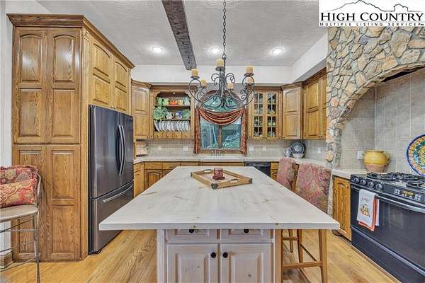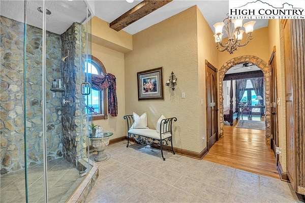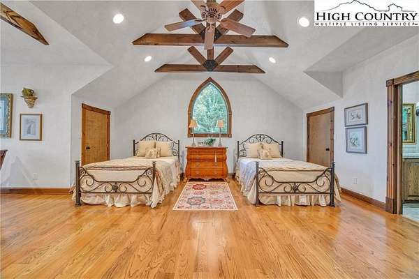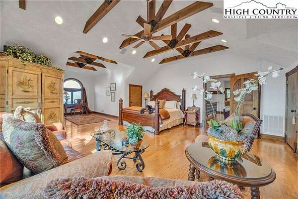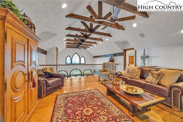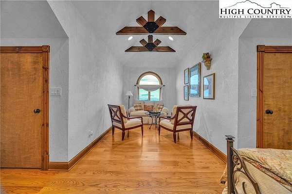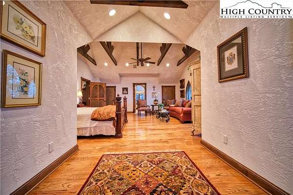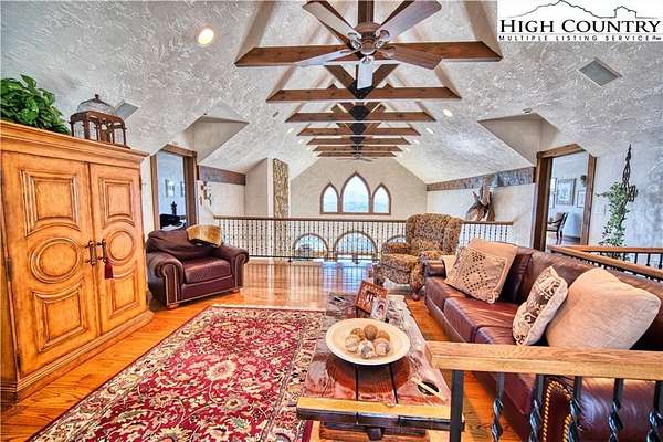 Upstairs, a light-filled loft with arched windows overlooks both the living area and the surrounding mountain views, creating an ideal reading space, studio, or secondary lounge. Also on the upper level are two additional primary-style ensuites, each exceptionally well-appointed with private full baths, dedicated office or sitting areas, and four closets per suite. This rare configuration makes the home equally suited for hosting family, extended stays, or multi-generational use -- without sacrificing privacy. There is no HOA, therefore no architectural restrictions, and no monthly dues, offering a level of autonomy that is increasingly difficult to find in the High Country. A detached garage or motor court can be accommodated along the private drive, providing future flexibility while preserving the home's setting and views. The true value of this property lies in what cannot be replicated: permanently protected neighboring land, unobstructed long-range views, and a vantage point above one of North Carolina's most vibrant mountain towns. This is a home for those who understand Boone -- and who seek not just a residence, but a legacy mountain estate defined by permanence, privacy, and character.