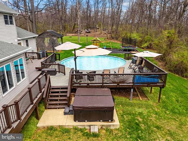 If you're looking for a truly impressive property with unexpected benefits, welcome to 530 Laurel Grove Road. With nearly 6,000 finished square feet and five bedrooms and 5.5 baths, this home allows for easy gathering, relaxing, living, and entertaining-and includes a private in-law suite perfect for multi-generational living, guests, or rental potential. Ensconced in nature on 8.6 acres and surrounded by mature trees in a largely pastoral setting, this home offers peace and privacy, and the outdoor swimming pool and surrounding decks add another layer of enjoyment. You'll also appreciate how this Winchester location gives you access to everything you love about town without living right in the city. The Colonial's facade is brick and siding with a welcoming front porch just waiting for you to sit and enjoy the scenery or rock a while on the porch swing. Once you enter, you have two options. The right takes you to the all the main level features amidst pleasing neutral paint colors you'll find throughout the home. A formal dining room allows for generous seating but also extra display cabinets and buffets. The kitchen has a bank of cabinets, long counters, and a four-seat island that includes the range. More informal dining sits adjacent, along with an inset, built-in desk space with cabinets. This shared space opens to a cheerful, whitewashed sunroom with a handsome wood ceiling, giving you natural views plus access to the deck and pool areas. Another side leads into a family room with a dramatic, vaulted wood ceiling, cozy corner fireplace, and lots of room for comfortable furniture. Back in the foyer, turn left through a door to find the convenient in-law suite, complete with a living room, kitchen and dining area, laundry and storage, and a spacious bedroom with attached full bath and walk-in closet. Private and accessible, it's also available furnished, if desired. Upstairs houses the substantial owner's suite with beautiful cherry hardwood floors and ample room for all your furniture. The ensuite features split vanities, beadboard wainscoting surrounding an appealing soaking tub, a walk-in shower, and water closet. A matching sitting room offers another pleasing, versatile space. Find three generous bedrooms and another two full baths on this floor. Downstairs is home to the fifth bedroom and attached full bath with an adjacent indoor, infrared sauna with chromotherapy benefits. A wood paneled den with hardwood floors and bar with a walk- out round out this level. Head outside and enjoy a large walkaround deck where seating and dining opportunities abound. Portions lead to the pool, hot tub, the backyard, and play areas. The home includes an attached two-car garage, but it's a boon to have the detached, three-car garage, perfect for a workshop or car enthusiasts, or to utilize for additional storage. This home has been meticulously maintained and updated by only two owners and comes with multiple fuel sources to help with energy efficient heating and cooling. With space galore, comfort, privacy, and functionality, this is an amazing oasis near the city.