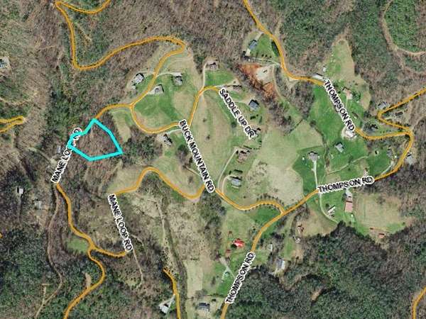 From Franklin take Hwy 441 North to L on Sanderstown Road to R on Thompson Road to L on Buck Mountain Road... stay L on Buck Mtn at the 0.2 mile mark and then turn L on Mane Loop at the 0.3 mile mark (the second entrance to Mane Loop). Only 0.4 miles of gravel road to access the lot.