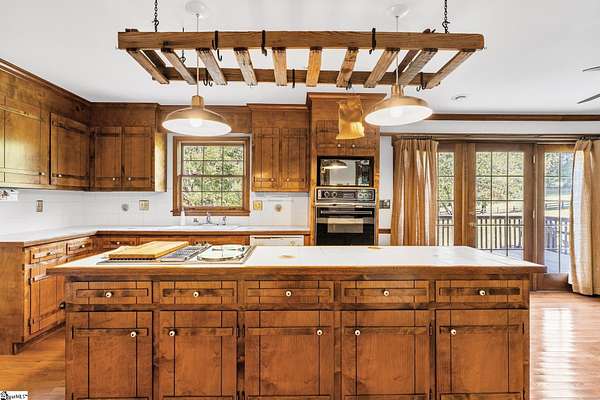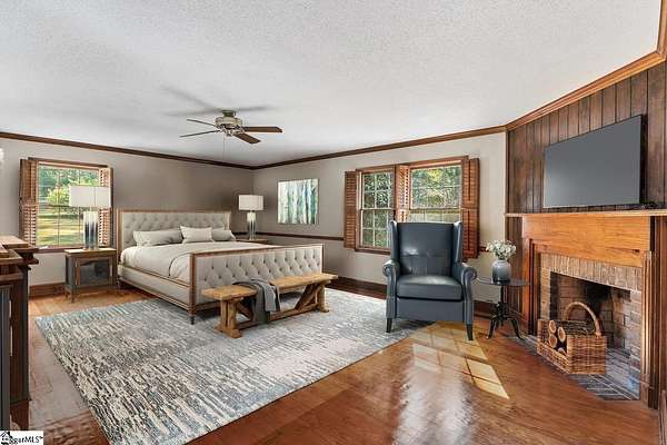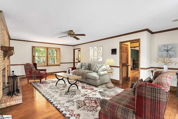 As you wind up the tree-lined drive, past the blooms of crepe myrtles swaying in the breeze, this storybook farmhouse greets you with all the charm of a simpler time. The rocking chairs on the front porch seem to whisper tales of laughter, love, and quiet evenings beneath the stars. Inside, every detail invites you to slow down and stay awhile. A quaint milk-glass chandelier glows above the dining table, while morning light fills the breakfast nook and spills out through sliding doors to a deck. From here, the view stretches across tree-covered hills that roll endlessly into the horizon. The heart of the home is the living room, where a grand brick wall fireplace promises warmth and memories on cool evenings. Around the corner, the primary suite offers its own wood-burning fireplace and on suite bath with herringbone wood accents, your own private retreat. Upstairs, there's space for everyone, with another primary suite, two additional bedrooms, and plenty of baths to go around. And then there's the walkout basement, a place with endless possibilities. Imagine hosting friends around the stone corner fireplace, savoring meals prepared with the built-in cast-iron stove and smoker, or turning the game room with bar sink into the ultimate hangout. With hookups already in place, it's ready for your finishing touch. Outside, the land invites endless possibilities, whether it's morning walks through the rolling fields, starting a garden, or simply soaking in the beauty of country living. This is more than a home; it's a lifestyle, a retreat, and a story waiting to be lived.