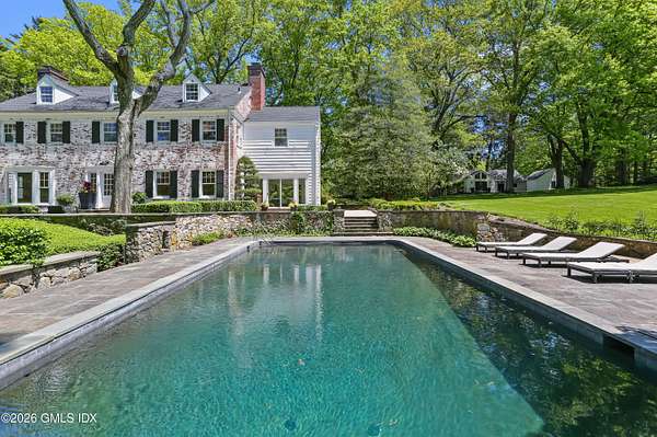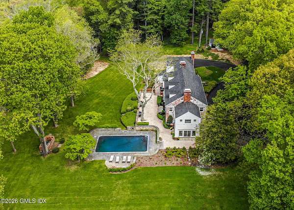 Set on 4.3 picturesque acres along coveted Round Hill Rd, the original main residence of historic Field View Farm is a distinguished pre-war Georgian Colonial of exceptional quality, long associated with one of the area's notable legacy estates. A long sweeping private driveway introduces the stately brick and clapboard home, thoughtfully and comprehensively renovated to today's highest standards with new Generator. Offering 6 bedrooms and 6.5 and baths, the residence balances timeless architectural elegance with modern comfort. Designed for elevated living, the grounds offer a resort-style pool, a private gym housed in its own standalone structure, and a heated four-stall horse stable offering flexibility for conversion to a guest cottage or ancillary living space. Set on 4.3 picturesque acres along coveted Round Hill Rd, the original main residence of historic Field View Farm is a distinguished pre-war Georgian Colonial of exceptional quality, long associated with one of the area's notable legacy estates. A long sweeping private driveway introduces the stately brick and clapboard home, thoughtfully and comprehensively renovated to today's highest standards with new Generator. Offering 6 bedrooms and 6.5 and baths, the residence balances timeless architectural elegance with modern comfort. Designed for elevated living, the grounds offer a resort-style pool, a private gym housed in its own standalone structure, and a heated four-stall horse stable offering flexibility for conversion to a guest cottage or ancillary living space.Expansive terraces and multiple French doors frame sweeping views of open fields and a mature evergreen grove. Abutting 8.5 acres of protected Land Trust property, the estate enjoys remarkable privacy, pastoral beauty, and enduring value in one of Greenwich's most prestigious settings.