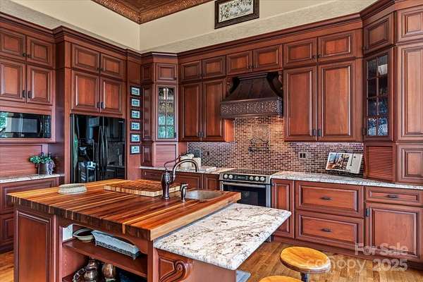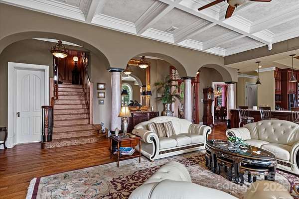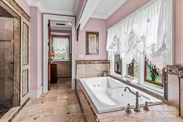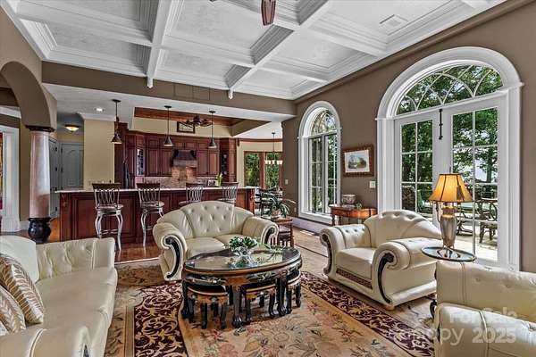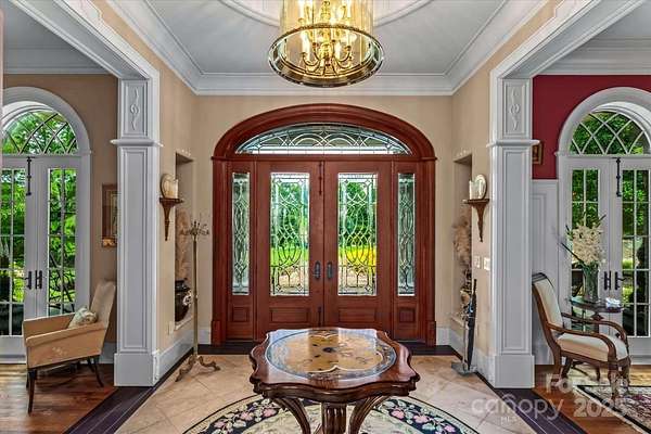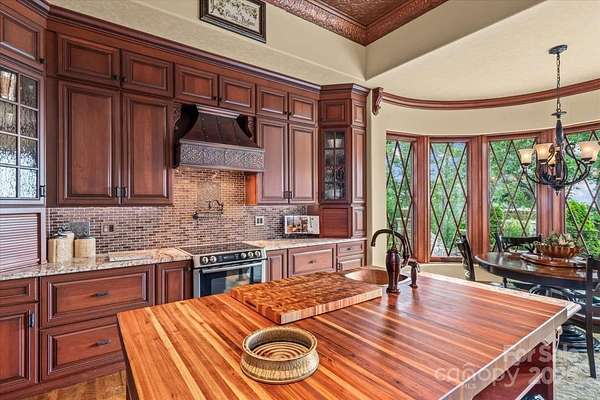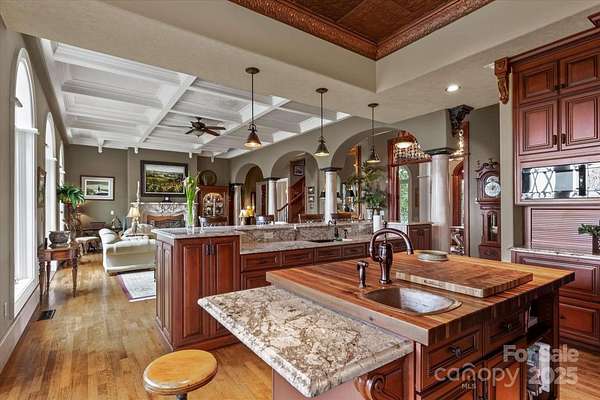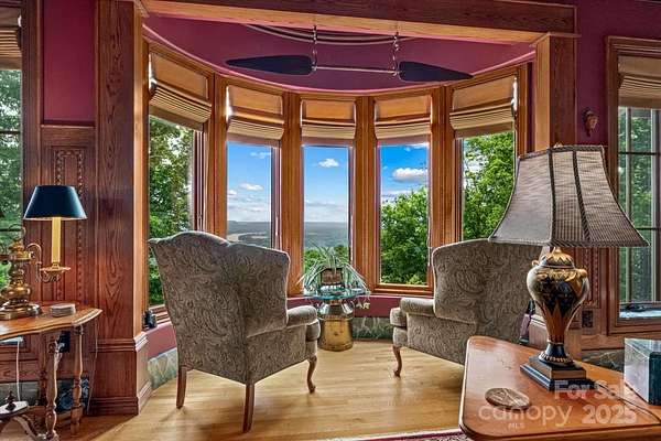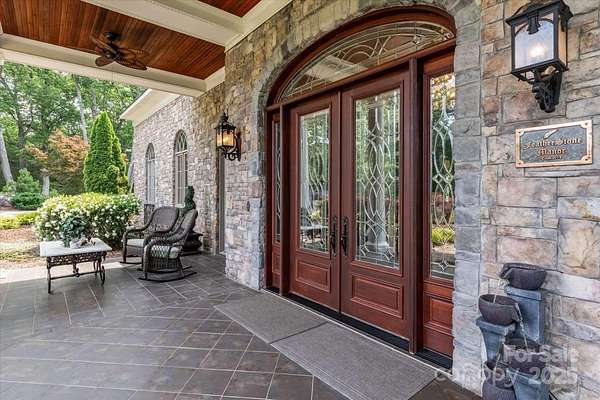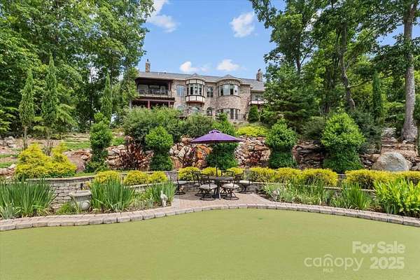 FeatherStone Manor. All Stone home on 14.4 acres in a gated, lake/mountain community. Stunning home with spectacular views of the Yadkin River/Uwharrie National Forest. Magnificent exterior and interior details with custom woodwork and cabinetry, marble baseboards & window sills, decorator designed windows, a lower level rustic wine cellar and wine vault. Three slate floored porches lookout over the southern mountains and river and a large cypress pergola shades the summer sun. Two large front porches offer seasonal views of the lake. There are 5 landscaped levels including fire pit area, putting green and sand trap, small vineyard and target range. All levels are easily accessed by stairs or service drive (golf cart/UTV). Wildlife in abundance. The Springs community offers lake access (High Rock Lake - 2nd largest in the State), boat launch, slips, club house with swimming pool, hot tub, tennis and pickle ball courts. A rare find for the selective buyer.