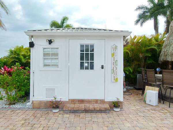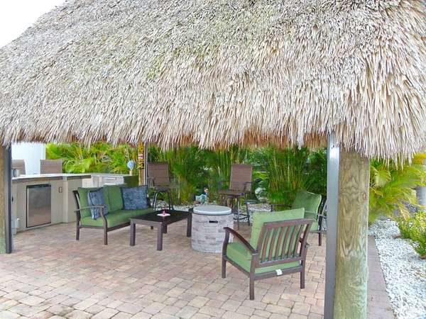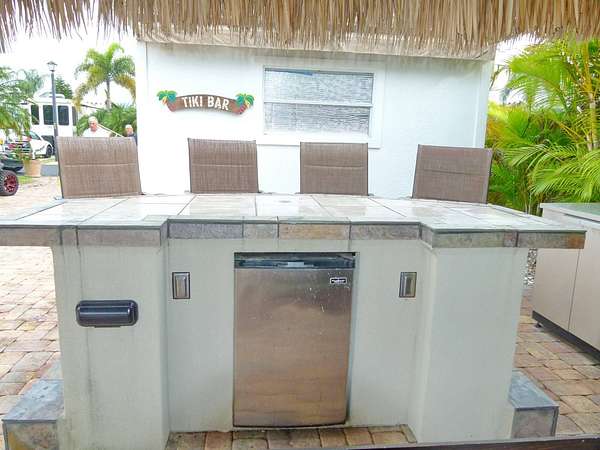 Discover Silver Palms RV Resort, featuring a stunning lot on Blue Heron Lake! This prime spot boasts beautiful pavers and a charming Casita equipped with a washer, dryer, refrigerator, and sink. Tiki Hut with automatic roll up and down screens helps you enjoy gatherings with four bar stools around the firepit, and relax in the outdoor patio area with a couch, two chairs, and a coffee table. The stainless steel cooking station and ambient rope lighting add to the experience, while motion lights enhance security. Join a vibrant community with fantastic amenities including a clubhouse, pool, owners' lounge, bar and grill, and pickleball courts. This is truly a five-star resort experience! Come for a drive and explore the appeal and endless activities that await you!
