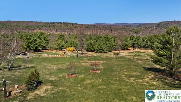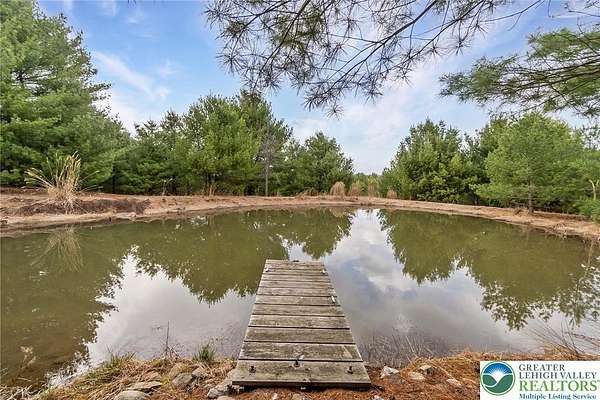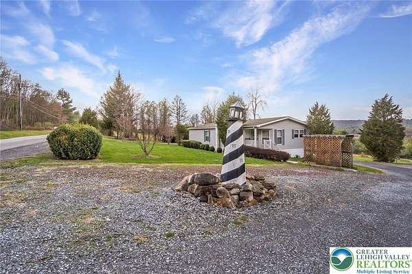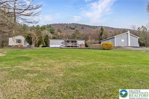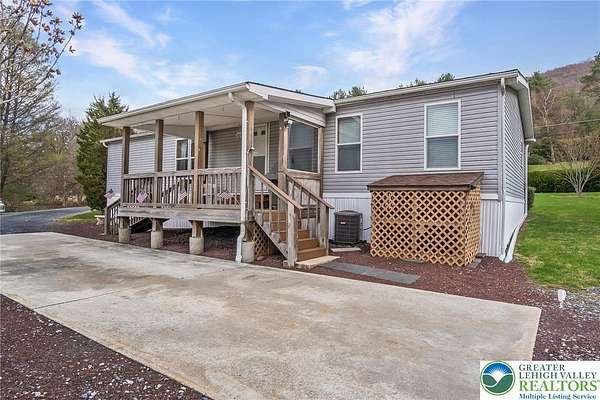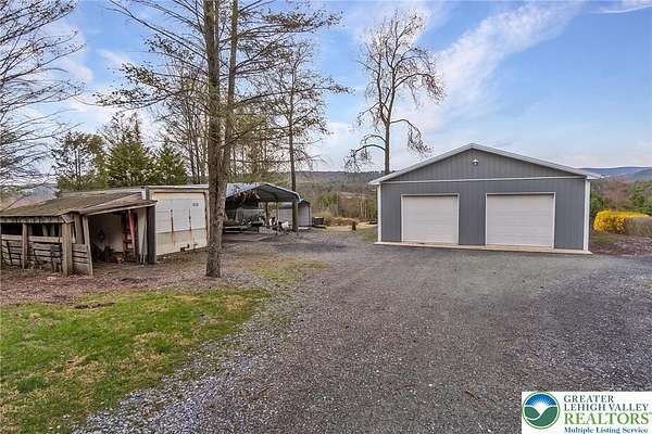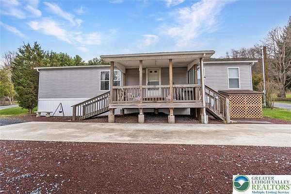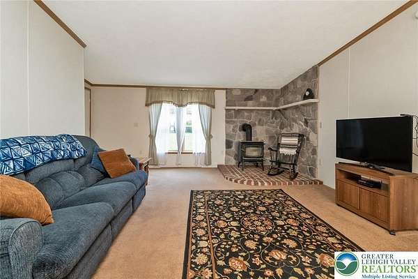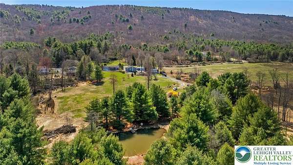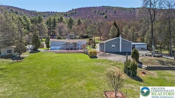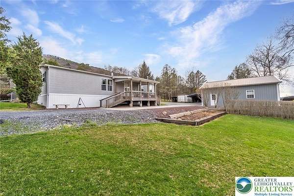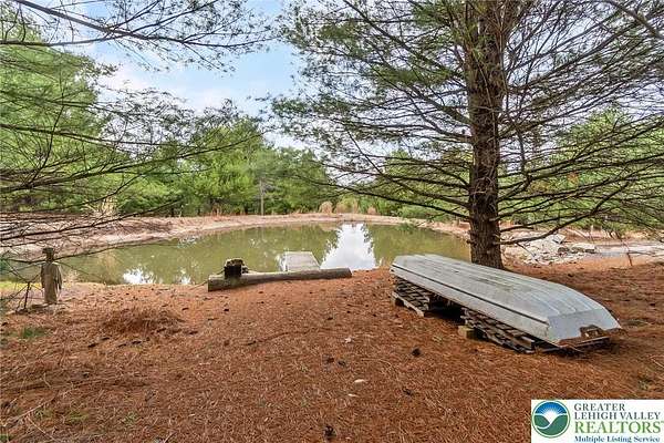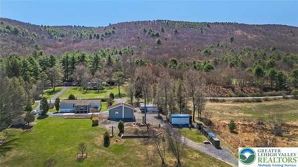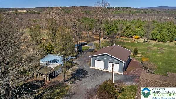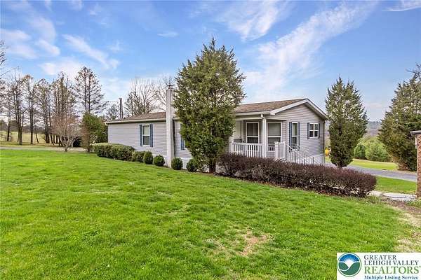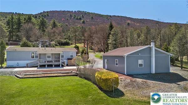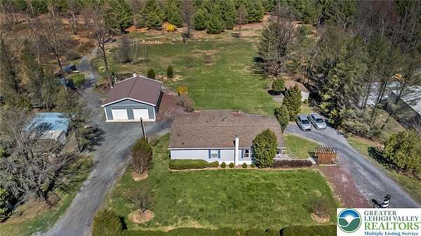 Set on 4.59 beautiful acres in East Penn Township, this property offers a rare opportunity to enjoy a private, mostly cleared setting with scenic views, open space, and a peaceful atmosphere. A driveway welcomes you in, opening to a spacious parking area and a striking stone horseshoe feature that adds both character and functionality to the landscape. The gently rolling land is ideal for gardening, outdoor activities, or simply enjoying the surroundings, while a pond enhances the property's charm and usability. The well-maintained 2008 built home offers 2 bedrooms and 2 full baths, including a spacious primary suite with a private bath and walk-in closet. With approximately 1,453 sq ft of living space, the home features a comfortable layout connecting the living room, dining area, and kitchen. The living room is highlighted by a stone accent wall with a wood stove, creating a warm and inviting focal point. Central air provides year-round comfort, and the home is move-in ready with the opportunity to make it your own over time. Enjoy the tranquil, peaceful land from the comfort of the covered back porch. The property is well-equipped for a variety of uses. An oversized 2-car garage with 220-amp service, 100-amp electric, and a wood stove offers excellent space for hobbies, storage, or workshop needs. Additional improvements include two sheds (one wired for generator hookup), a 2-car carport, and a 1-car carport. Conveniently located with easy access to Routes 209, 248, and the PA Turnpike, and just minutes to the Lehigh River, D&L Trail, Beltzville Lake State Park, and downtown Jim Thorpe, this property combines privacy, space, and accessibility in one unique setting.