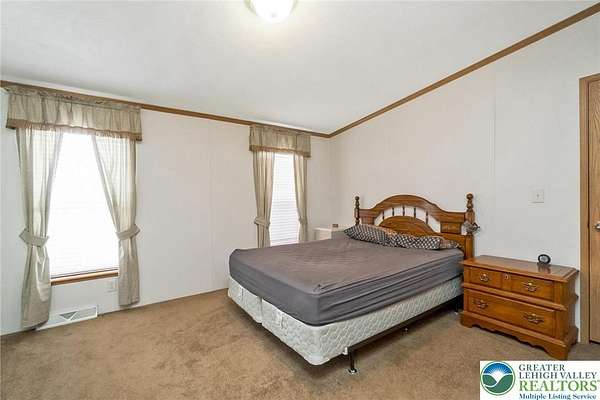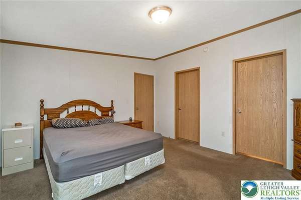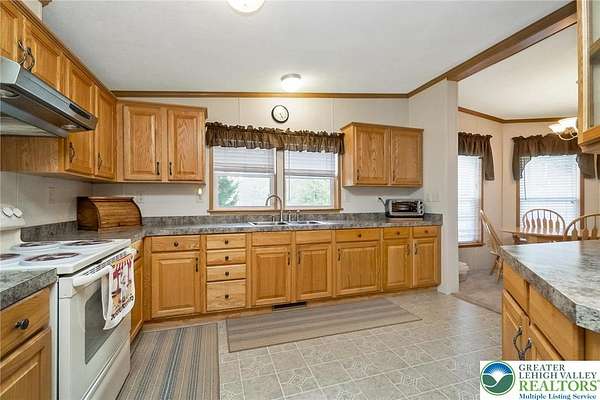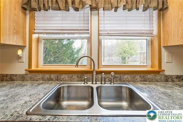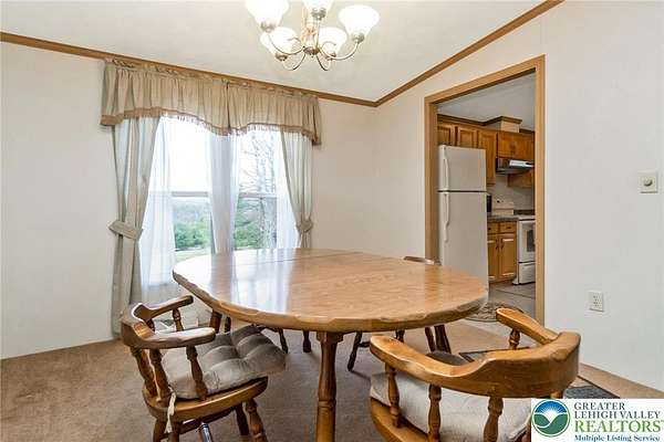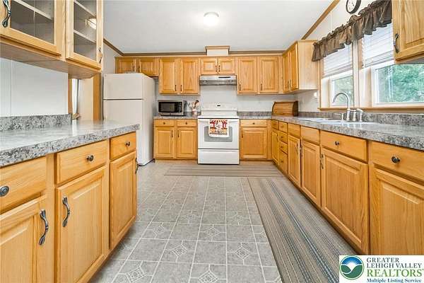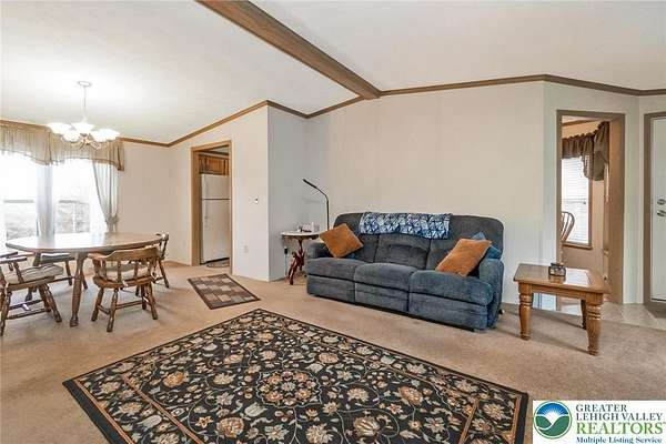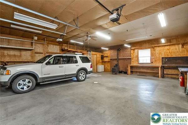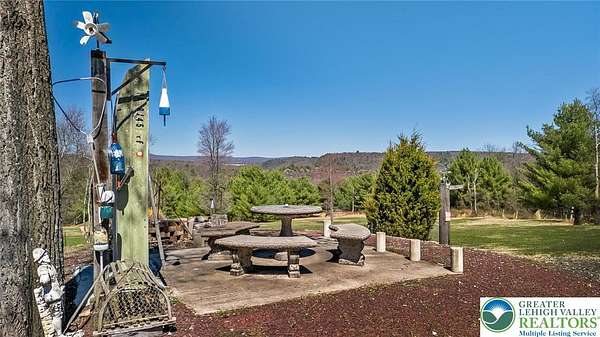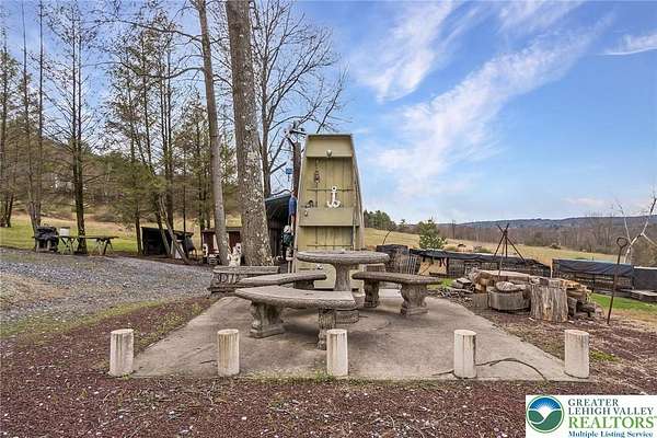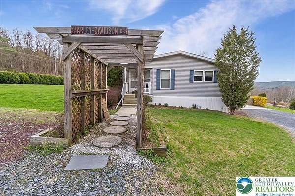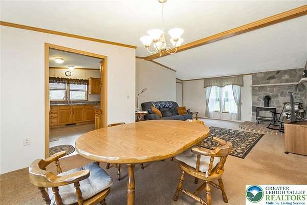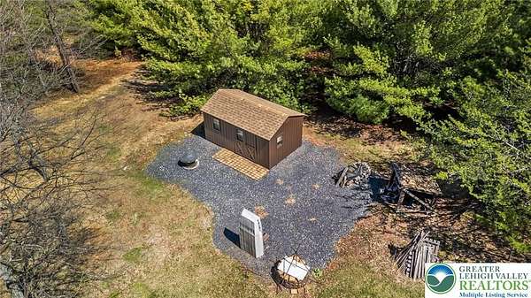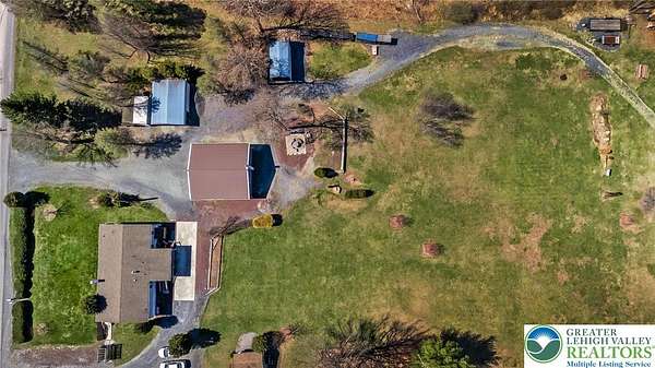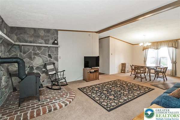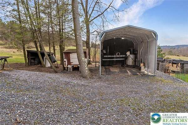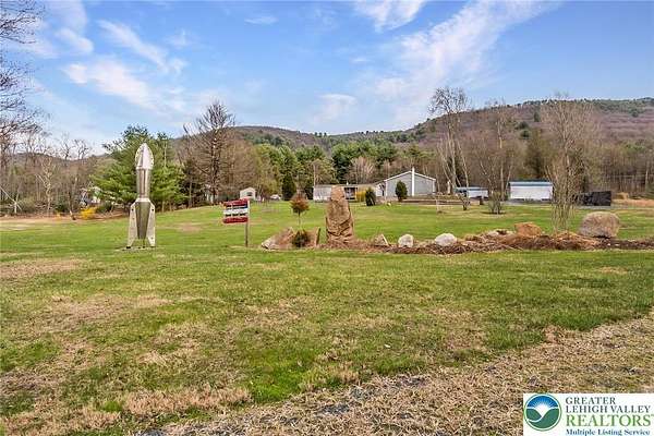 Set on 4.59 beautiful acres in East Penn Township, this property offers a rare opportunity to enjoy a private, mostly cleared setting with scenic views, open space, and a peaceful atmosphere. A driveway welcomes you in, opening to a spacious parking area and a striking stone horseshoe feature that adds both character and functionality to the landscape. The gently rolling land is ideal for gardening, outdoor activities, or simply enjoying the surroundings, while a pond enhances the property's charm and usability. The well-maintained 2008 built home offers 2 bedrooms and 2 full baths, including a spacious primary suite with a private bath and walk-in closet. With approximately 1,453 sq ft of living space, the home features a comfortable layout connecting the living room, dining area, and kitchen. The living room is highlighted by a stone accent wall with a wood stove, creating a warm and inviting focal point. Central air provides year-round comfort, and the home is move-in ready with the opportunity to make it your own over time. Enjoy the tranquil, peaceful land from the comfort of the covered back porch. The property is well-equipped for a variety of uses. An oversized 2-car garage with 220-amp service, 100-amp electric, and a wood stove offers excellent space for hobbies, storage, or workshop needs. Additional improvements include two sheds (one wired for generator hookup), a 2-car carport, and a 1-car carport. Conveniently located with easy access to Routes 209, 248, and the PA Turnpike, and just minutes to the Lehigh River, D&L Trail, Beltzville Lake State Park, and downtown Jim Thorpe, this property combines privacy, space, and accessibility in one unique setting.
