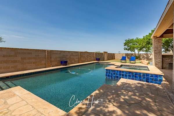 Est $13,215/moBeautiful 4 BR, 3.5 Bath home with approx. 17.7 acres of land. Sparkling pool and spa plus outdoor cabana with fireplace and cooking area; 4 pipe fenced pastures, 2 large insulated workshops (apprx; 1800 sq ft and 1440 sq ft), Horse barn with 7 stalls and tack room, 2 water wells with tank storage, 3 horse stalls. Beautiful remodeled gourmet island kitchen with granite counters, tile and hardwood flooring, recent Class IV roof, House has city water and septic system. Country estate living with room to roam! Rare opportunity for West Texas!