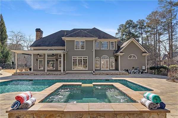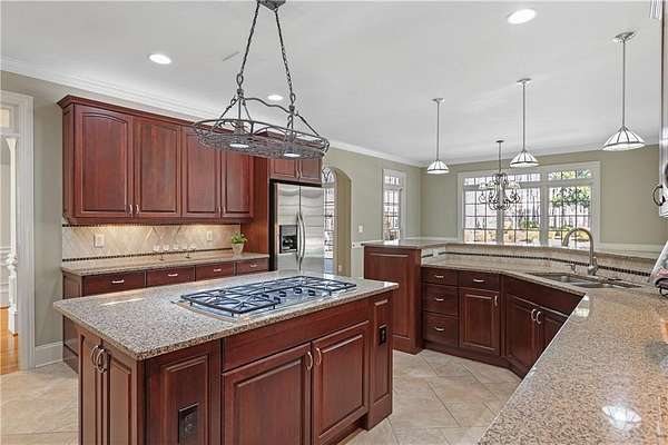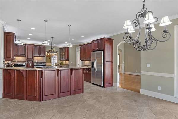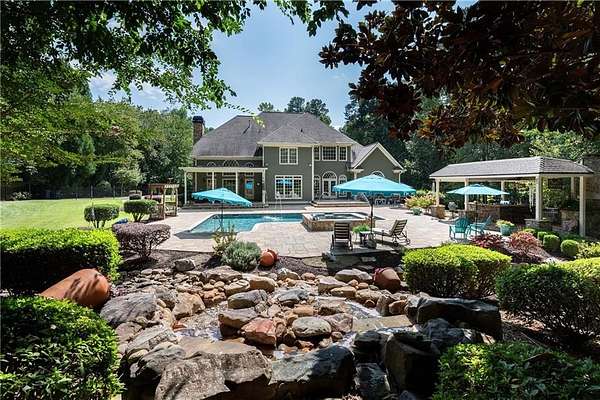 Impeccable 5-Bedroom, 5.5-Bath Estate on 1.6+/- Acres. Welcome to this stunning residence, where resort-style living meets timeless elegance. This home offers the perfect balance of luxury, comfort, and functionality. Step outside to your own private oasis featuring a heated saltwater pool and spa, an outdoor kitchen, fireplace, and a separate fire pit-the perfect setting for moments to share with family and friends. The beautifully landscaped, botanical-inspired gardens surround the stone patio and cascading waterfall, creating a breathtaking backdrop for entertaining or relaxing. The thoughtful interior design provides the ultimate space for a busy family and/or entertaining friends and family. Inside, the main-level primary suite provides a serene retreat with direct access to den/home office. The deluxe primary bath features dual vanities, a soaking tub, and a separate shower with dual shower heads. The formal living room flows seamlessly to the patio, offering picturesque views of the gardens, pool, and waterfall. At the heart of the home, the chef's kitchen features abundant cabinetry and generous counter space-ideal for everyday living and holiday entertaining. The two-story family room, complete with rear-stair access, opens to the covered patio and leads upstairs to four additional bedrooms and a spacious loft area. On the terrace level, enjoy an oversized 'almost' soundproofed media room designed for immersive movie nights or sports events, plus versatile spaces for a game room, gym, workshop, or hobbies. The main level provides an oversized three-car garage, exceptional storage, oversized garage doors: 9' single door and an 18' double door, plus a 24-foot-deep bay-large enough to accommodate most large SUVs and/or trucks. Additionally, the 4th garage bay on the terrace level is accessible by a separate driveway for easy access and additional parking. This estate is a rare opportunity to own a home that truly has it all. Lovingly maintained and only on its second owner. The sellers have updated all HVAC units and water heaters, and the pool is only 2 years old, and the roof is 7 years old. Professionally landscaped. You will not want to miss the opportunity to make this your family's next home.