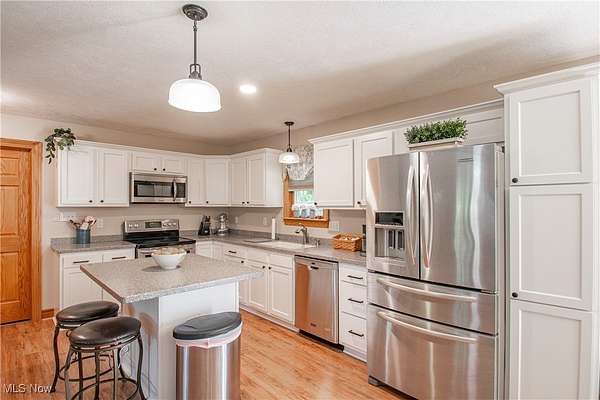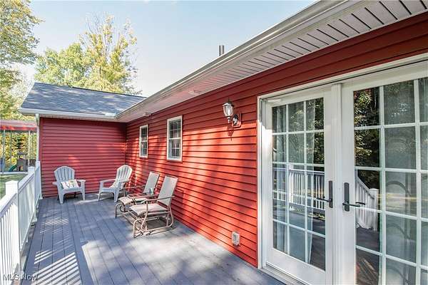 Welcome to this beautifully maintained 3-bedroom, 3-bath ranch home, built in 2015 and nestled on 2.4 private acres. With rich woodwork and an open-concept floor plan, this home combines modern comfort with serene country living while still being conveniently close to shopping. The heart of the home is the stylishly updated kitchen, featuring white cabinetry, Corian countertops, and a spacious layout perfect for entertaining. Upgraded luxury vinyl plank (LVP) and laminate flooring flow throughout the home, adding warmth and durability. The primary suite offers a private retreat with a full ensuite bathroom, while two additional bedrooms and another full bath provide ample space for family or guests. Enjoy the convenience of a first-floor laundry room and a spacious 3-car garage equipped with water access and automatic openers. The partially finished basement, completed in 2020, adds valuable living space, including a large flex room ideal for a 4th bedroom, office, or hobby space, as well as a third full bathroom and cozy living area. Outdoor living is just as inviting, whether you're relaxing on the covered front porch or enjoying the peaceful backyard from your composite deck. Garden enthusiasts will appreciate the mature blackberry bushes and raised garden beds, and there is even dedicated space for RV storage. This one-of-a-kind home blends privacy, practicality, and charm. Don't miss your chance to make it yours!