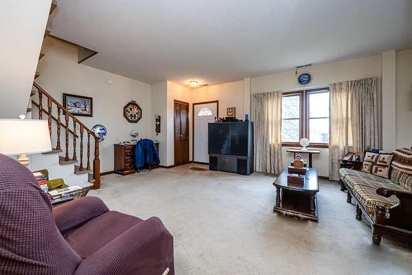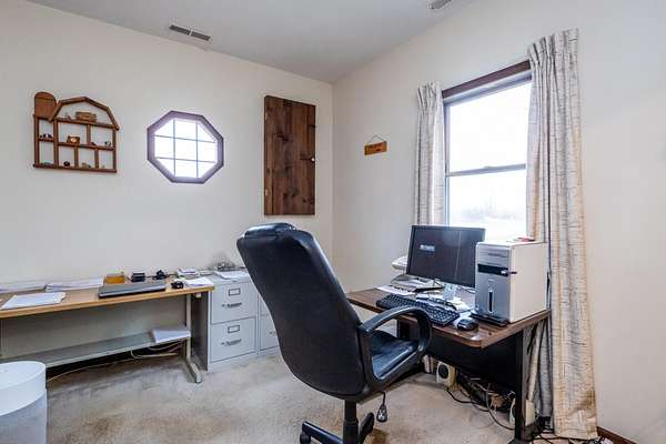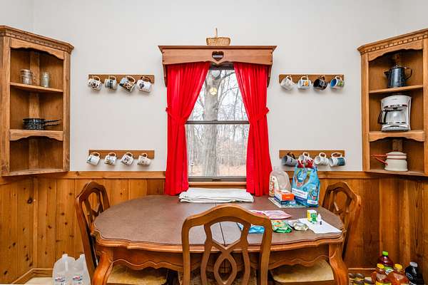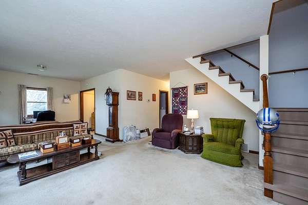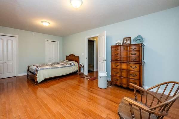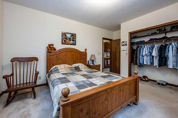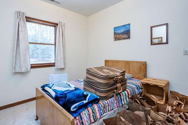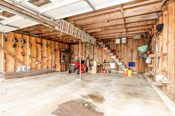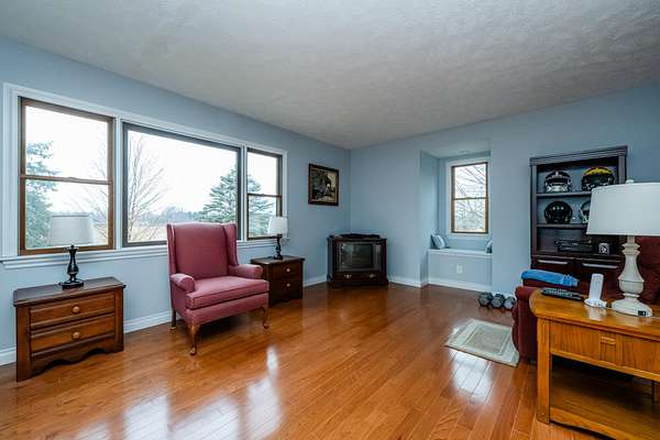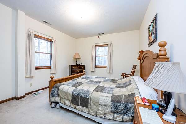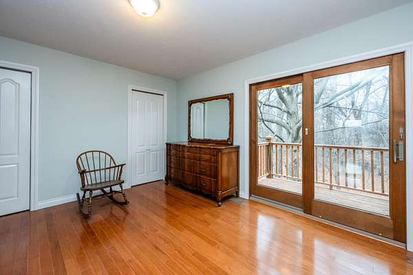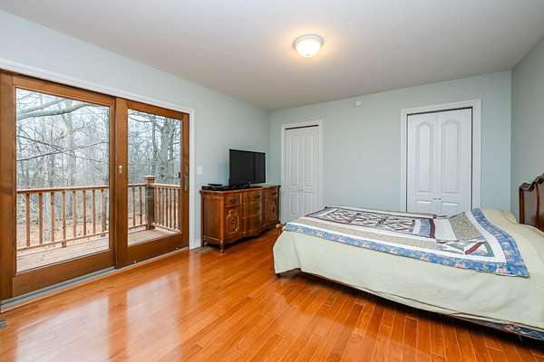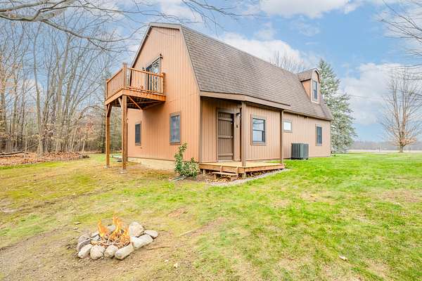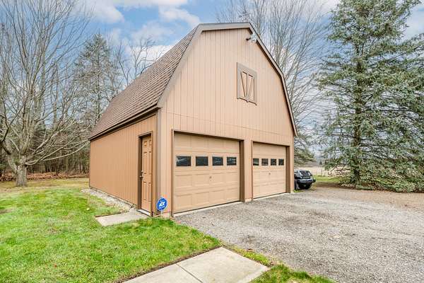 Large 3-bedroom, remodeled in 1990. On 7 ACRES with a matching 2-car garage (22x26 with loft for lots of storage). Large primary bedroom on second floor with balcony overlooking woods. Two main floor bedrooms (one bedroom needs some finishing). One upstairs room could be a 4th bedroom or office. Hardwood floors upstairs, New carpeting downstairs to be installed in 10 days. Home sets back about 700 feet. Very private & woodsy setting.