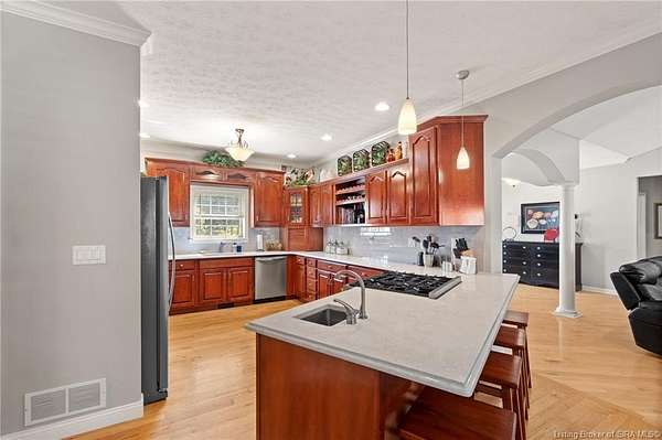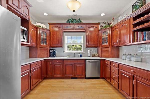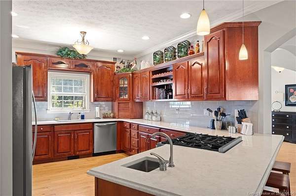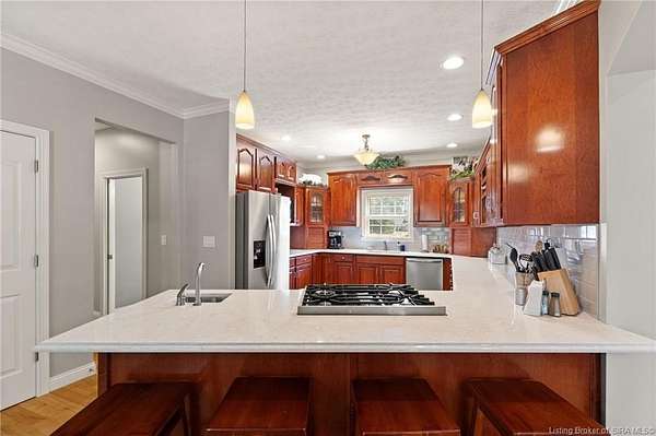 Huge Covered Patio, Lush Landscaping/Coy Pond. Tankless Water Heater, NEW Roof w/in 3 Years, NEWER HVAC, Septic Pumped last year too! Easy, Quick Access to NEW East-End Bridge, River Ridge and Hwy 62, Shopping and Dining! Sq ft & rm sz approx.