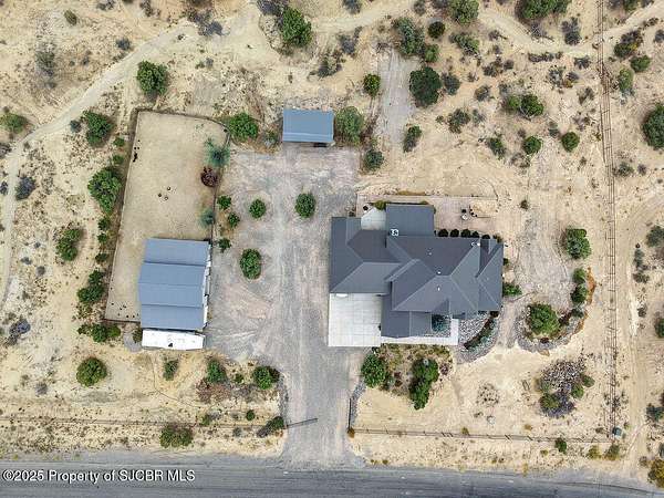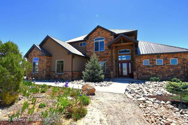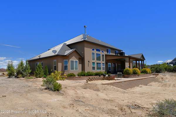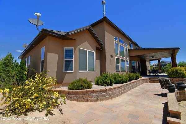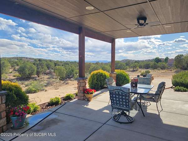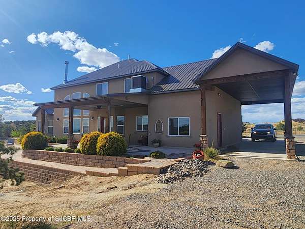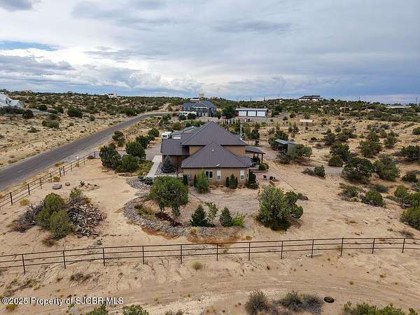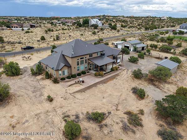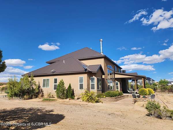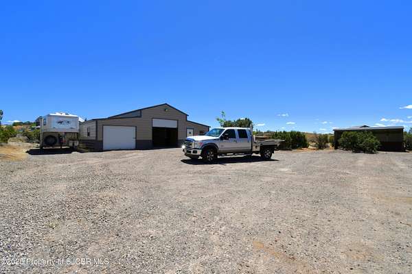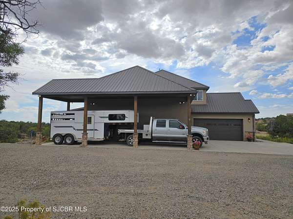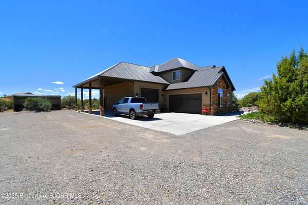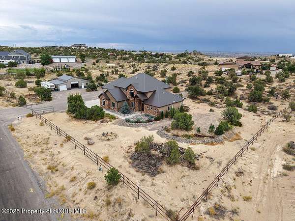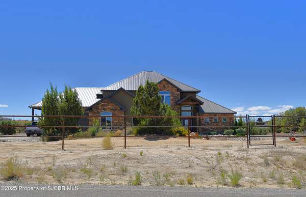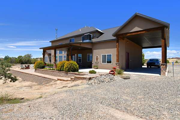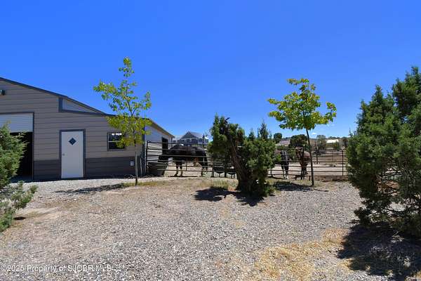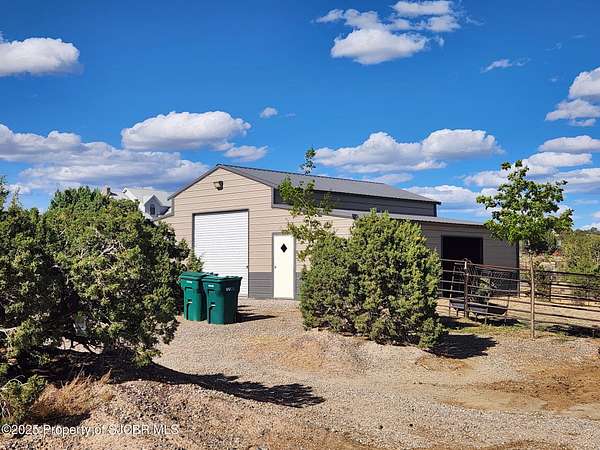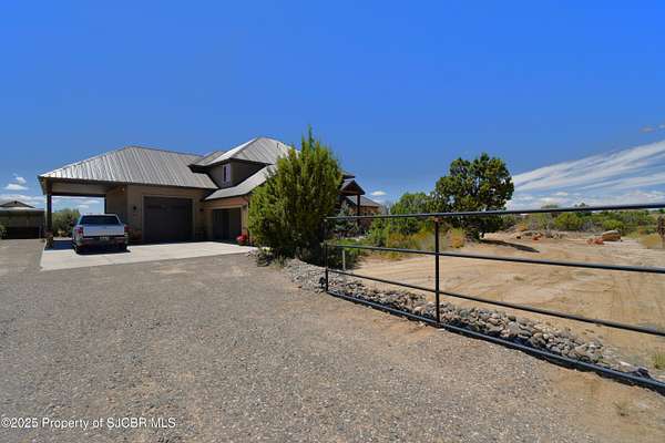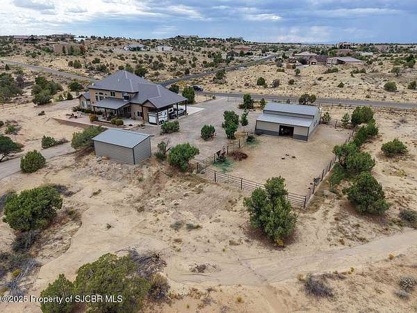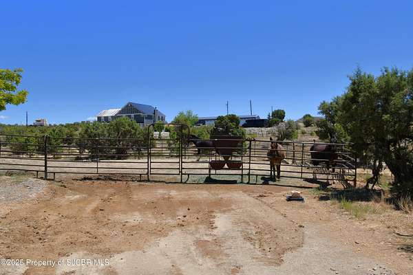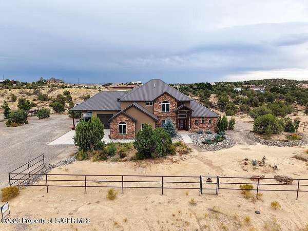 Wonderful location envelopes this custom home! Just minutes to access the extensive Glade Recreation Area including the Kinsey and Anasazi trails for your hiking, biking and enjoying wants! Four bedrooms, 2 and 1/2 baths and an open floor plan expands the outdoor feeling to the inside. Excellent natural light and gorgeous vistas and sunsets from generous windows and spacious patios. Home was built in 2019 by B&T Builders and customized for a comfortable and outdoor lifestyle in mind.The entry foyer includes a bright crystal chandelier and marble tile flooring that leads into the great room with vaulted ceilings and rock fireplace. Grand picture windows show off the natural views and mature Pinon and Juniper trees. The kitchen includes room for a formal dining table, and granite bar for large family and friends gatherings.The primary suite on the main level features bay windows and a tray ceiling. Walk into a spacious primary bath with granite countertops, double sinks, and great lighting. Large shower and extra-large soaking tub. The walk-in closet is spacious with well placed windows for natural light on your wardrobe.Wide stairway leads to second story with three more generous bedrooms, an elegant full bathroom and a sitting area on the upper landing: all with inspiring views.The lower level continues with an ample laundry room with granite countertops for folding and sorting space and a deep laundry sink.Convenient half bath has nice access for guests or the garage area. Walk through to the finished two-car garage and third oversized Truck or RV garage with 12' ceilings and 10' door. 30x12x12 RV Carport adjoins the garage; hook up your RV to water, sewer, and 30 AMP electric with bright lighting to show the way. The 42x30 Barn or Shop is currently home to the resident mules (equine permit will transfer), hay storage and tack room. Detached carport houses tractor, parking or outdoor toys. Exquisite curated landscaping with floral and arbor spaces.