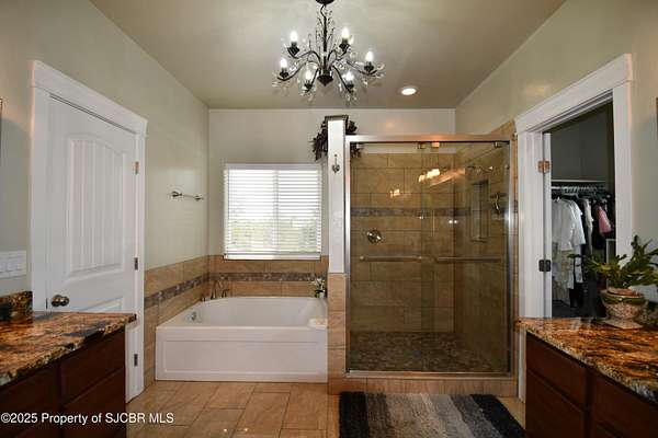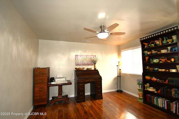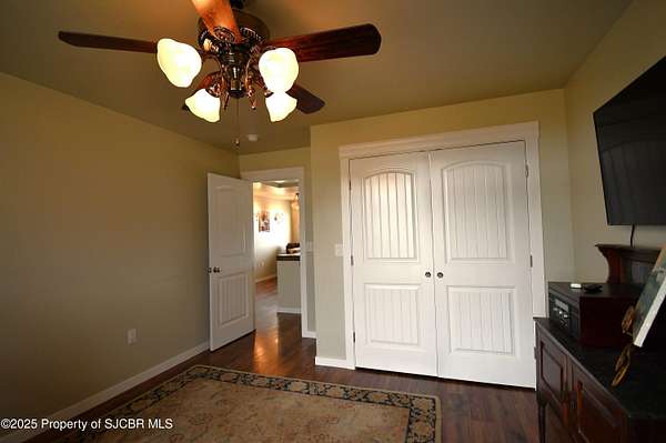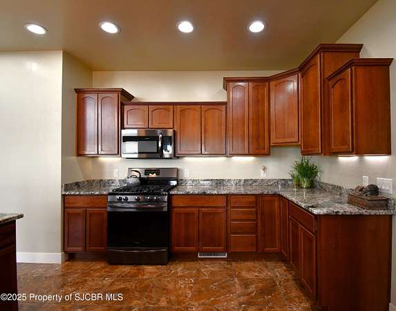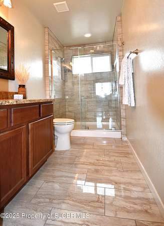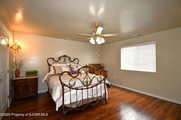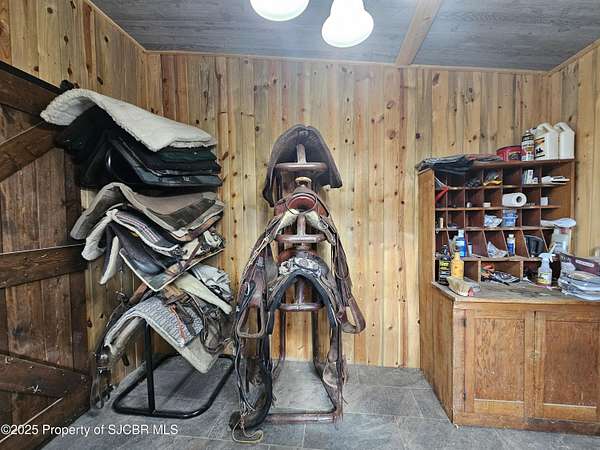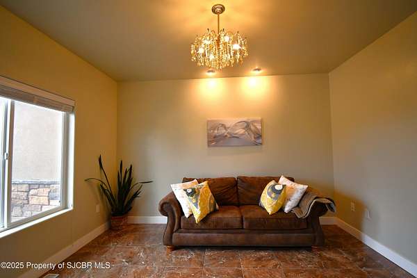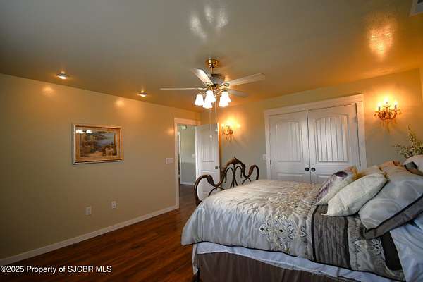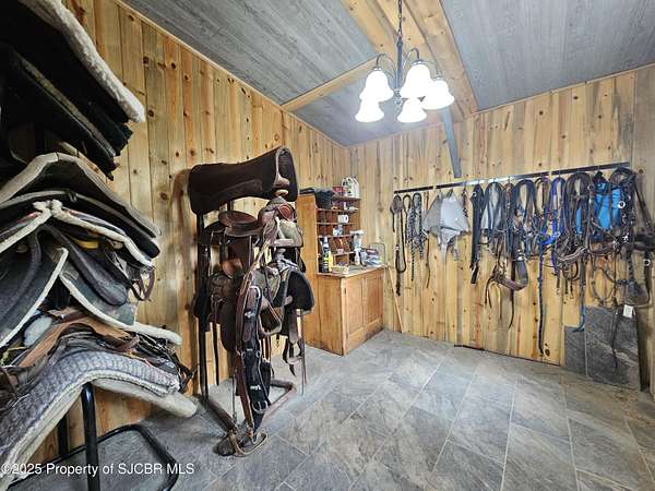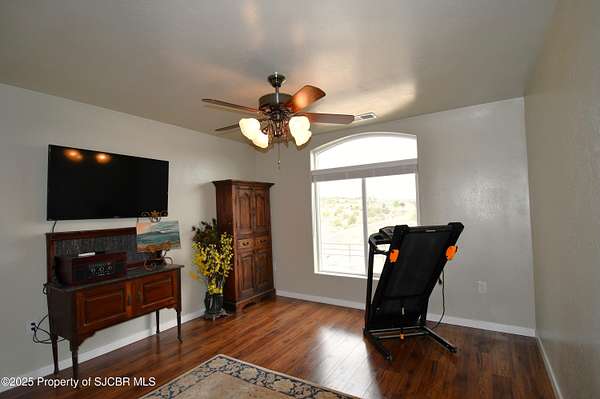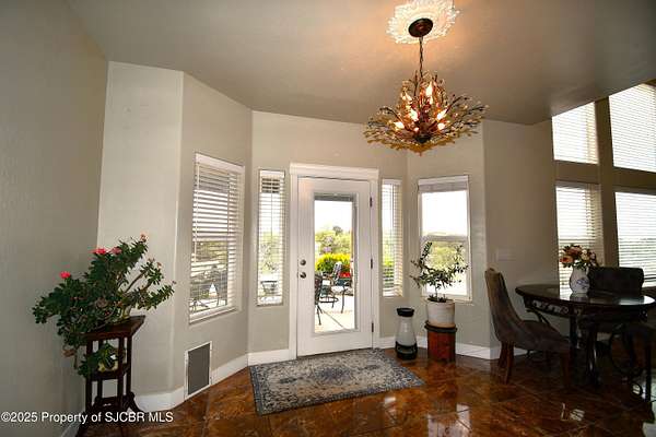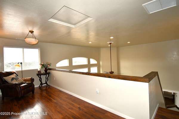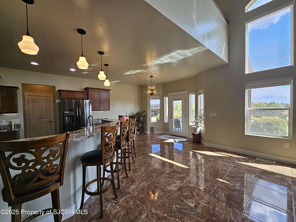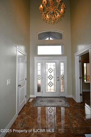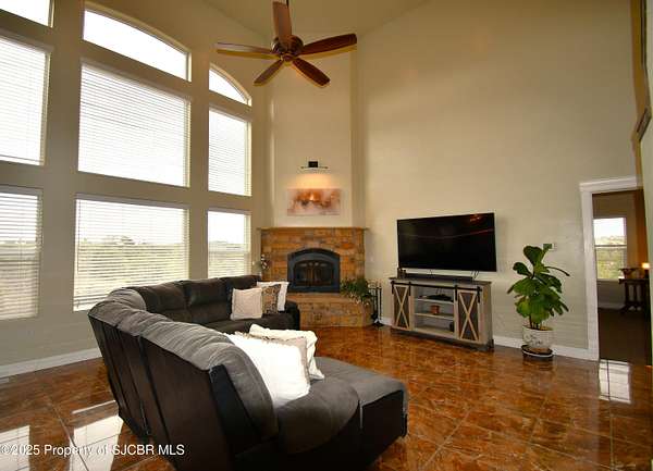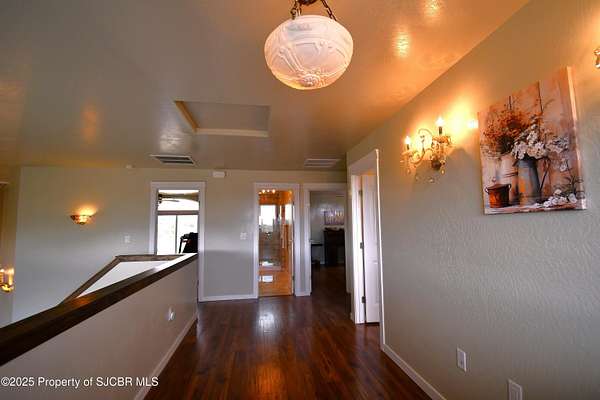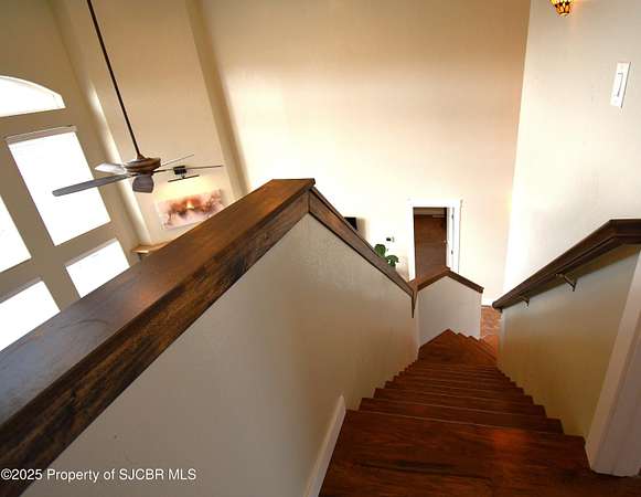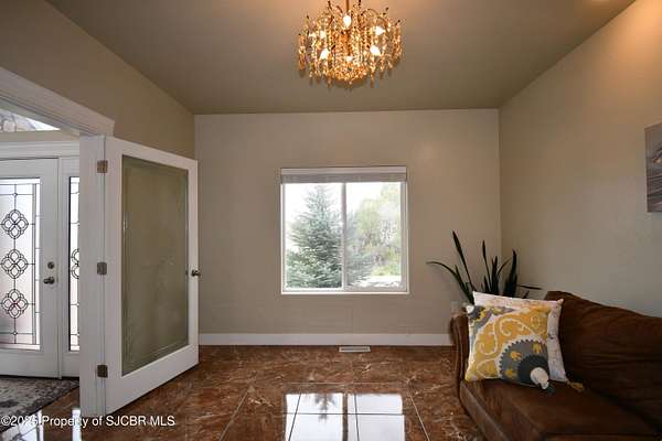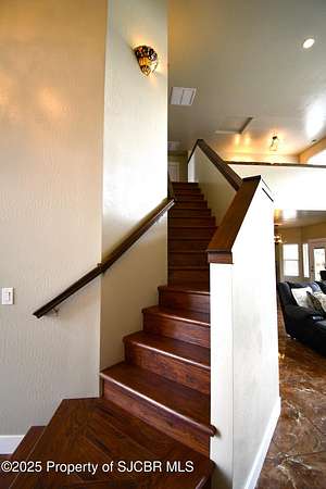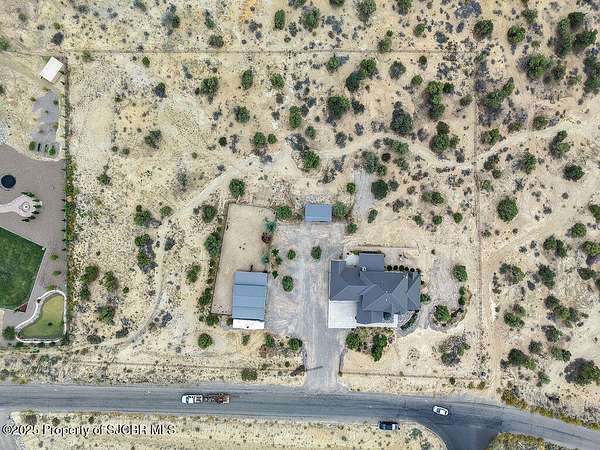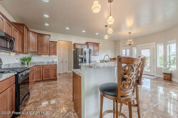 Wonderful location envelopes this custom home! Just minutes to access the extensive Glade Recreation Area including the Kinsey and Anasazi trails for your hiking, biking and enjoying wants! Four bedrooms, 2 and 1/2 baths and an open floor plan expands the outdoor feeling to the inside. Excellent natural light and gorgeous vistas and sunsets from generous windows and spacious patios. Home was built in 2019 by B&T Builders and customized for a comfortable and outdoor lifestyle in mind.The entry foyer includes a bright crystal chandelier and marble tile flooring that leads into the great room with vaulted ceilings and rock fireplace. Grand picture windows show off the natural views and mature Pinon and Juniper trees. The kitchen includes room for a formal dining table, and granite bar for large family and friends gatherings.The primary suite on the main level features bay windows and a tray ceiling. Walk into a spacious primary bath with granite countertops, double sinks, and great lighting. Large shower and extra-large soaking tub. The walk-in closet is spacious with well placed windows for natural light on your wardrobe.Wide stairway leads to second story with three more generous bedrooms, an elegant full bathroom and a sitting area on the upper landing: all with inspiring views.The lower level continues with an ample laundry room with granite countertops for folding and sorting space and a deep laundry sink.Convenient half bath has nice access for guests or the garage area. Walk through to the finished two-car garage and third oversized Truck or RV garage with 12' ceilings and 10' door. 30x12x12 RV Carport adjoins the garage; hook up your RV to water, sewer, and 30 AMP electric with bright lighting to show the way. The 42x30 Barn or Shop is currently home to the resident mules (equine permit will transfer), hay storage and tack room. Detached carport houses tractor, parking or outdoor toys. Exquisite curated landscaping with floral and arbor spaces.