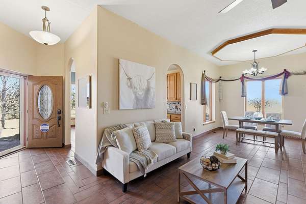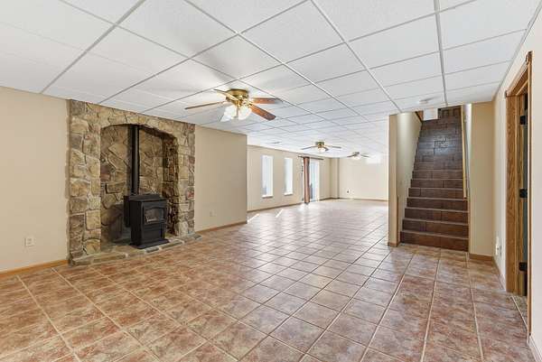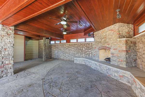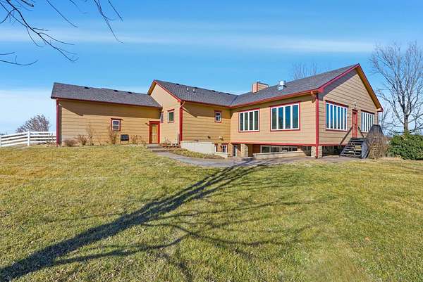 This Valley Center gem offers a rare combination of expansive living space, specialized entertaining features, and 2.5 acres of Kansas countryside. Boasting over 4,000 square feet of meticulously maintained interior, this unique residence greets you with a bright foyer that leads seamlessly into a functional kitchen. The heart of the home is the grand living and dining area, centered by a cozy fireplace and characterized by soaring ceilings and durable wood-grain tile flooring that runs throughout the entire main level. The true showpiece of this property is the massive 900-square-foot enclosed sunroom designed specifically for year-round hosting. This incredible addition features its own fireplace, plenty of windows to take in the views, and a dedicated cooking station complete with a BBQ grill and a commercial-grade range hood for professional ventilation. The main floor also hosts the primary suite with an ensuite bathroom and walk-in closet, two additional bedrooms, a full guest bathroom, and laundry. The living space doubles in the walk-out basement, which provides a massive family room, a third fireplace, a full bathroom, and two generous bonus rooms perfect for an office, gym, or hobby space. Safety and storage are prioritized with a built-in concrete storm shelter. Stepping outside, the lower level leads to a partially covered patio, that gives you access to both the rest of the property and the lower level of the enclosed sunroom. Practicality meets luxury with a large detached shop for tools and equipment, a private septic system, and dedicated wells for both drinking water and irrigation. Finished with a clean concrete driveway stretching from the road to the garage, this one-of-a-kind estate is perfectly prepared for its next chapter!