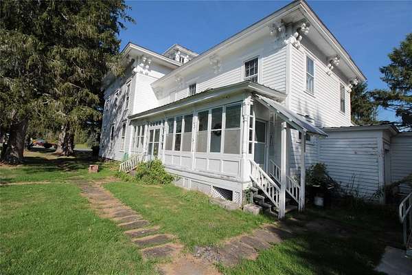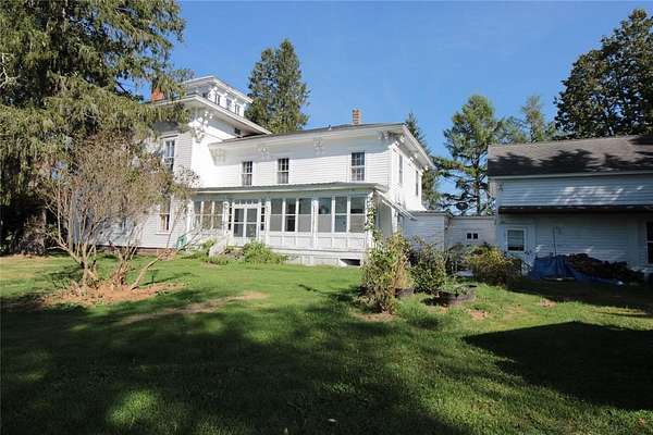 Let's look at Whitehall in Smithville Flats, NY. Circa 1840 Italianate-style home offers over 4,000 sqft of living space across three levels, plus a fourth-level widow's walk with views for miles--all on 2.3 parklike acres. Enter through the spacious foyer with a mahogany staircase, bordered by a formal dining room and two parlor rooms, each with original fireplaces & marble mantels. The grand hall leads into a large den that opens into the kitchen & a walk-in pantry. Off the den is a bedroom/home-office along with a full bath. On the second level there are five bedrooms, two full baths, and a room with plumbing for a bath or laundry. The third level provides open space plus a large attic, and the fourth offers panoramic views from the home's iconic tower. Modern electric, new heating with smart thermostats, handicap-accessible ramp, enclosed all-season porches, attached garage with workshop, laid stone foundation. Qualified buyers may tour by appointment. Inspections available.