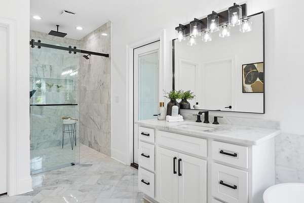 - Breakfast Nook, Crown Molding, Double Shower, Double Vanity, Granite Counters, High Ceilings, High Speed Internet, Kitchen Island, Open Floorplan, Pantry, Primary Downstairs, Separate Dining Room, Separate Shower, Tub/Shower Combo, Walk-In Closet(s)