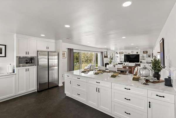 Perched atop 5.26 usable acres in the prestigious West Covenant of Rancho Santa Fe, this beautifully reimagined single-story Modern Ranch-style residence offers timeless design, privacy, and effortless California living. With 4 spacious bedrooms and an open-concept floor plan, the home is bathed in natural light and seamlessly blends indoor and outdoor living. Floor-to-ceiling glass sliders open to an expansive interior courtyard and western-facing meadow, capturing peaceful views and a touch of ocean on the horizon--perfect for golden-hour gatherings or quiet relaxation. The home is thoughtfully designed for entertaining, with a sparkling pool, bocce ball court, and a detached guest casita offering comfort and privacy for visitors. The gourmet kitchen features high-end appliances and sleek finishes, ideal for everyday living or hosting with ease. Located in the award-winning Roger Rowe School District and just minutes from both the historic Village of Rancho Santa Fe and the coast, this westside location is unmatched in convenience and serenity. With direct access to the community's renowned trail system, 5306 Linea del Cielo is a rare opportunity to own a private, turn-key estate in one of Southern California's most coveted enclaves