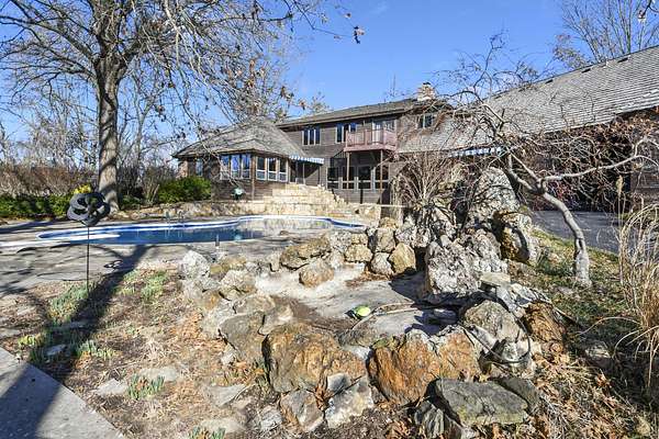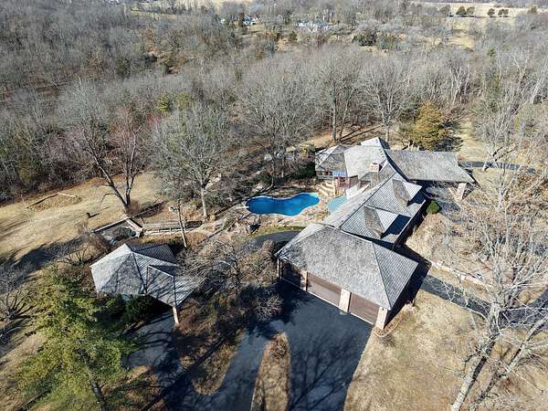 ESTATE WITH GUEST HOUSE NEAR LAKE SPRINGFIELD Set on approximately 8 acres in Springfield, Missouri, just minutes from the city's medical corridor, this fully reimagined estate-style property offers a rare blend of privacy and proximity. Within walking distance of Lake Springfield, the setting is the standout - expansive and quiet, yet close to hospitals, everyday conveniences, and outdoor recreation.The main residence spans roughly 7,749 square feet featuring four bedrooms, four full baths, and one half bath, with a primary suite on the main level. Multiple living areas and a finished partial basement provide flexibility for both daily living and entertaining across all levels of the home.A separate guest house with one bedroom and one bath sits adjacent to the in-ground pool, offering private accommodations for guests, in-laws or extended stays. The property also includes a covered pavilion, pergola leading to the fire pit area, a three-car garage plus RV garage and three carport spaces, supporting both residential and recreational needs.With rare acreage, substantial living space, and an exceptional location close to Springfield's most critical amenities, this property offers a setting that allows for both retreat and connection.