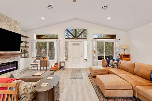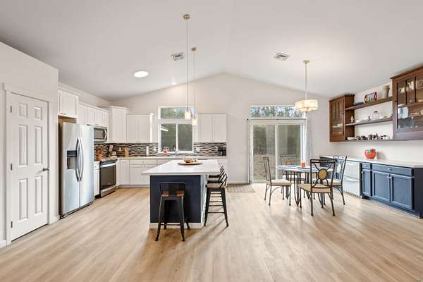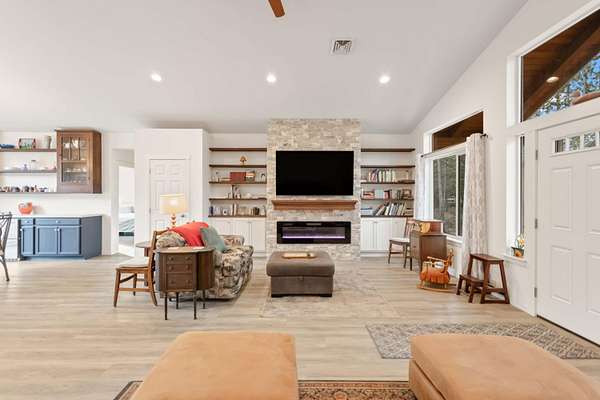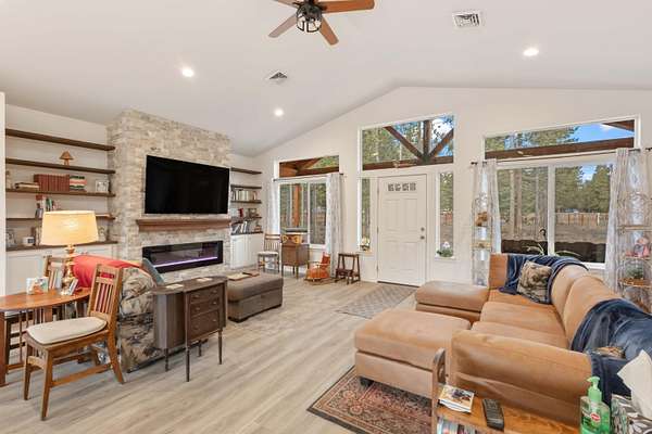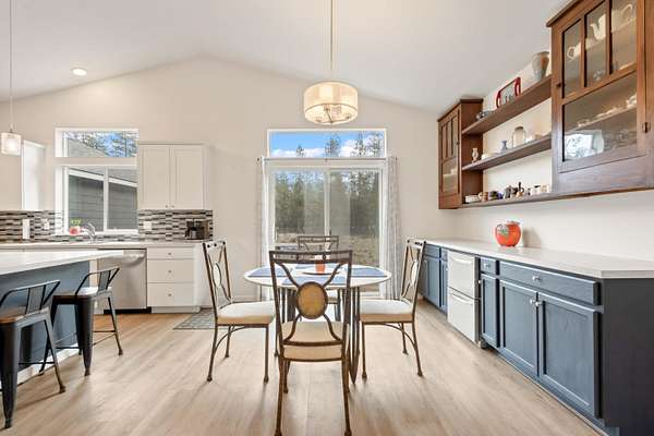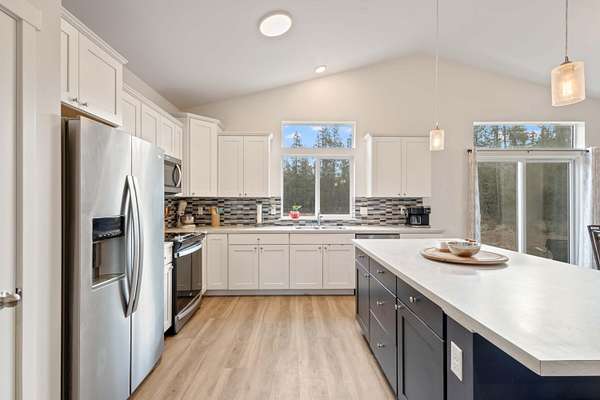 Welcome to this beautiful single-story home built in 2022, offering 1,780 square feet of thoughtfully designed living space. Featuring 3 bedrooms and 2 bathrooms, this home blends modern finishes with warm, inviting character. Step inside to soaring vaulted ceilings and expansive windows that flood the home with natural light, creating a bright and airy atmosphere throughout. The open layout is perfect for both everyday living and entertaining. Enjoy peaceful mornings and relaxing evenings on the impressive front deck, highlighted by large wooden beams that add rustic charm. An attached 2-car garage provides convenience and additional storage. Situated on a flat, usable 2-acre lot with fire-reduction thinning already completed, the property offers both beauty and peace of mind. The standout feature is the massive 30x40 shop - fully equipped with concrete floors, 220-amp service, 30 amp, multiple 110 outlets throughout, and bright LED lighting covering the entire shop with 14ft doors.