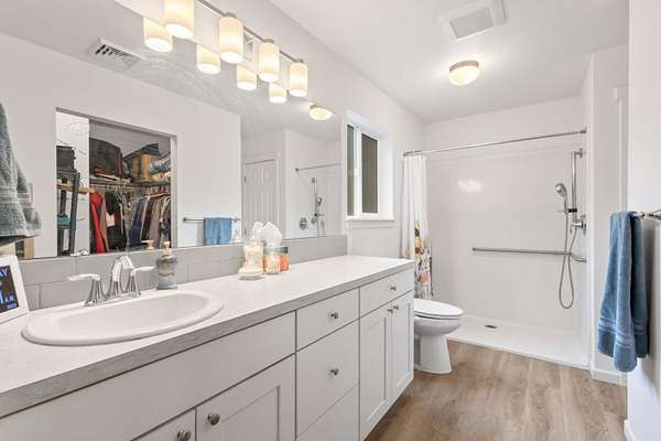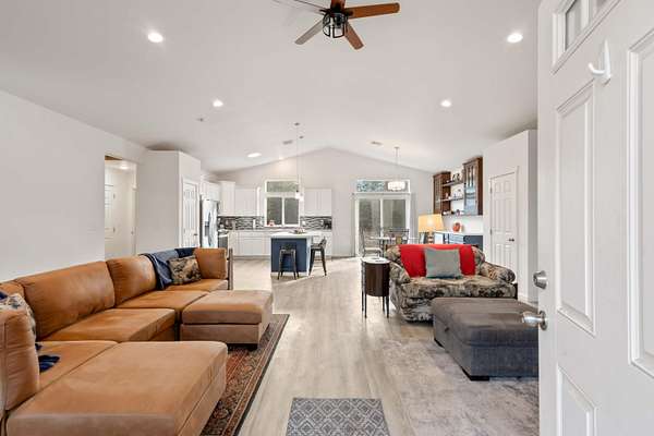 - Ceiling Fan(s), Fiberglass Stall Shower, Kitchen Island, Laminate Counters, Linen Closet, Open Floorplan, Pantry, Shower/Tub Combo, Vaulted Ceiling(s), Walk-In Closet(s)