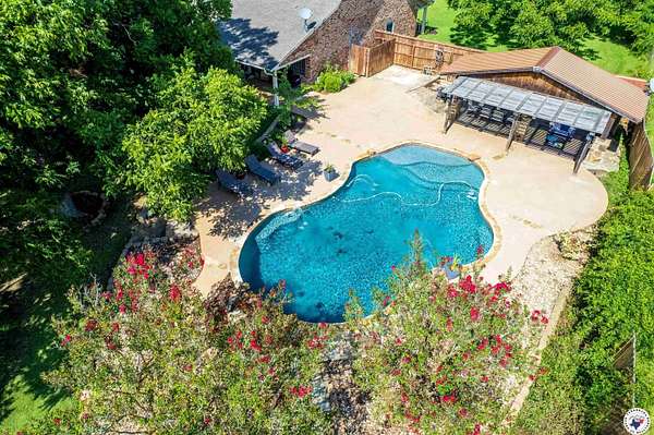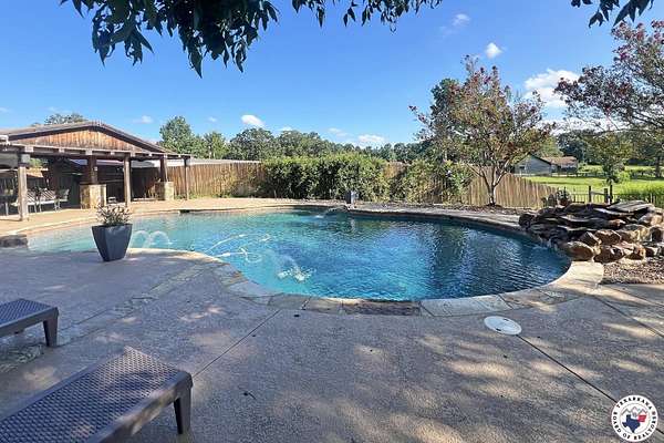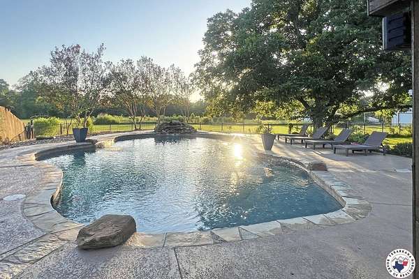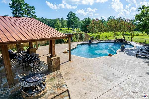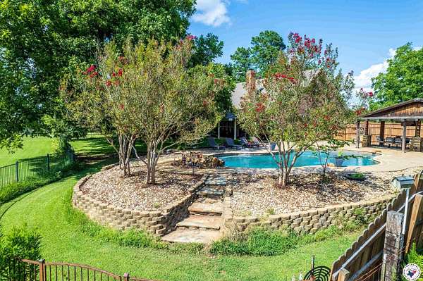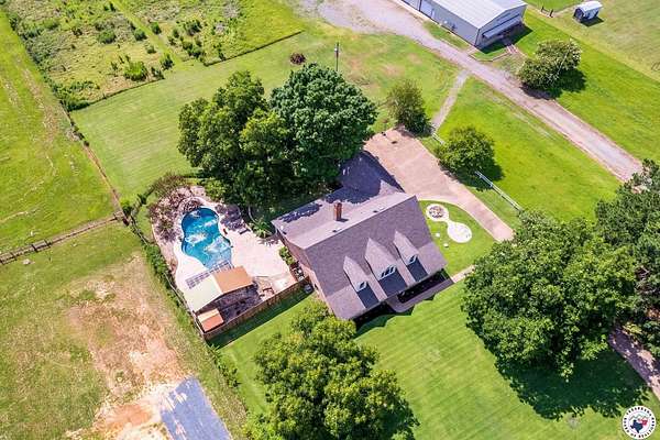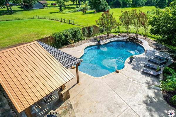 Experience the perfect blend of country charm and city convenience in this beautiful 4-bedroom, 3 bathroom home nestled on 3.29 acres. Thoughtfully designed for both relaxation and entertaining, this property offers a stunning outdoor living space complete with a gunite in-ground salt water pool and ample patio space for family gatherings or weekend get-togethers. Step inside to find all-new energy efficient windows that fill the home with natural light. The primary suite is conveniently located on the main floor, along with a private guest suite, ideal for multi-generational living or visiting friends. Upstairs you'll find two spacious bedrooms, each with its own dressing area and a shared Jack & Jill bathroom, plus generous walk-in closets for added storage. Work from home in style in the beautiful private office located just off the main living area. Enjoy morning coffee on the covered front porch and wind down on the back porch overlooking your peaceful property. If you're looking for a private retreat with the benefits of city proximity, this is your perfect match!