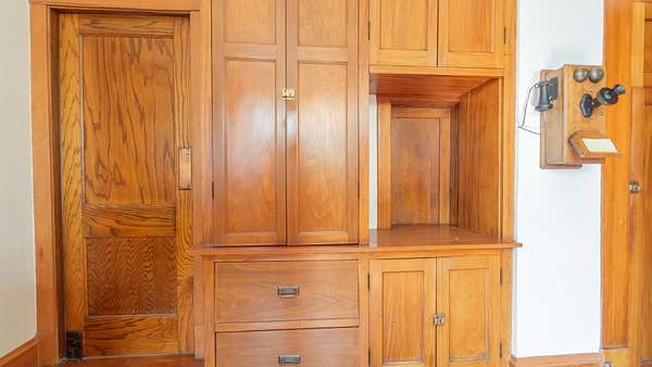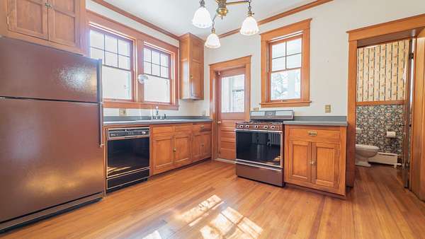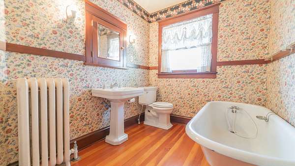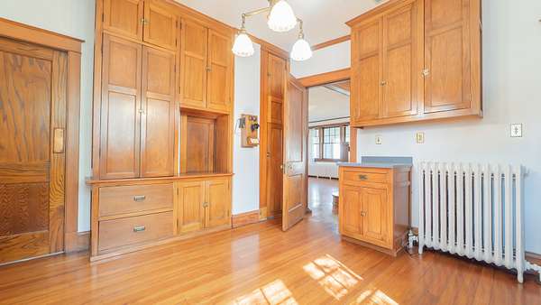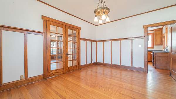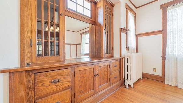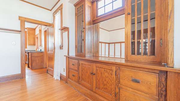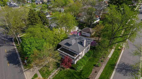 Elegant Foursquare home in the Sunnyside Historic District in Crown Point and restored to its original condition. As you enter this home through a 31X9 enclosed , all window , sun porch you're greeted by a formal living room featuring an original fireplace with gas log and cozy parlour to your left. The beautiful dining room boasts French doors and an oak built-in buffet, leading to a custom eat in kitchen with built-in cabinets and Corian countertops. The home features all hardwood floors and stunning woodwork throughout, with 9-foot ceilings adding to the spacious feel." Also, features 4 bedroom 3 bathroom two story with finished attic , with dormers and partially finished basement providing spacious laundry room, office, family room and 3/4 bath. In addition to a 16X12 shop space, 31X9 storage under porch in basement. Two car garage, Period Gardens & Heritage rose gardens.Three blocks walking distance to out Historic Crown Point Square Proudly featured in the 2000 Tri Kappa Tour of Homes. Recent Upgrades Include: New high- efficiency boiler with two zones (2022), New AC & water heater (2024) New Roof (2022)