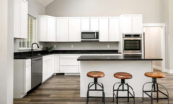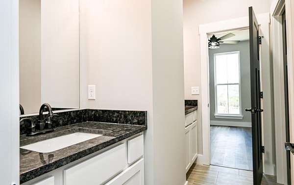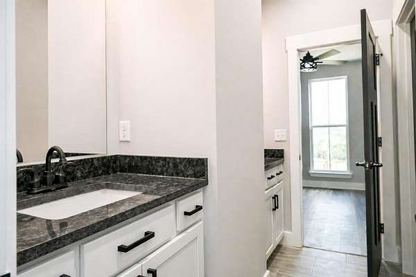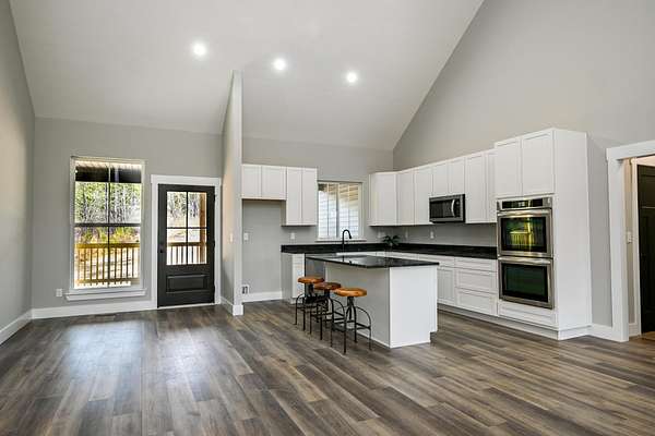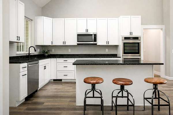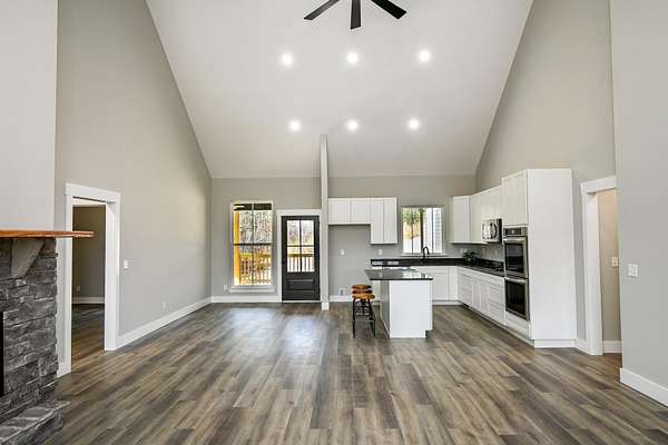 - Bathroom Mirror(s), Cathedral Ceiling(s), Ceiling Fan(s), Double Vanity, Granite Counters, High Ceilings, Kitchen Island, Open Floorplan, Pantry, Primary Downstairs, Split Bedrooms, Walk-In Closet(s), Walk-In Shower