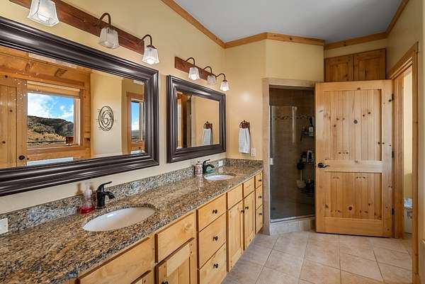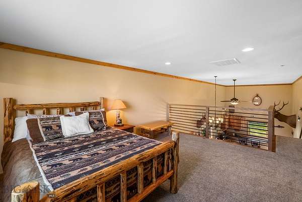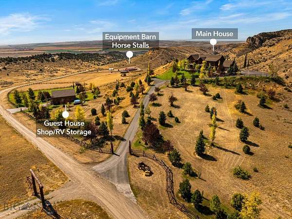 Experience the best of Montana living on 42.7+/- acres in Gallatin River Ranch. This beautifully maintained log home has been extensively updated with new windows, exterior doors, trellis, expanded deck, and a blacktop driveway. Inside you'll find an open kitchen/dining/living area with gas fireplace, hardwood floors, office, and a spacious main-level primary suite with soaker tub, walk-in closet, and private bath. The walk-out lower lower level offers a theater room, family/game room with pool table, craft/homeschool space, safe, mudroom, pantry, and heated 2-car garage with epoxy floors. In total, the home provides 4 bedrooms, 2 offices, 3 full baths, and 2 half baths. A detached guest house includes 2 bedrooms, full kitchen, wood floors, laundry, and living area. Outbuildings feature a heated shop with RV bay, large equipment barn, and horse barn with heated tack room, saddle racks, and covered bays. Ownership at Gallatin River Ranch includes access to 2.5 miles of private Gallatin River frontage with beautiful river accesses, 640+/- acres of land-locked state land, 270 acres of Fish & Wildlife Parks land, and 1,600+ acres of open space for hiking, riding, and enjoying wildlife. A world-class equestrian center is located within the Gallatin River Ranch, offering training, boarding, indoor/outdoor arenas, and more. All this just 25 minutes from Bozeman. Extras include dual AC, propane generator, whole-house sprinkler system, and 2024 side-by-side ATV. Seller is offering a $35,000 credit at full price toward flooring and/or bath remodel.