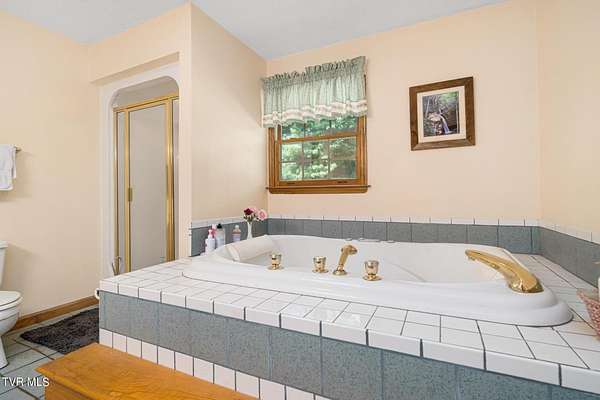 - 2+ Person Tub, Built-In Features, Garden Tub, Kitchen/Dining Combo, Laminate Counters, Open Floorplan, Primary Downstairs, Soaking Tub, Wired For Data