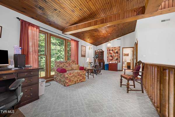 Come and enjoy your private oasis in the hills of Tennessee! Beautiful cedar home is tucked away on over 5 acres for total privacy and enjoyment of the tranquility from the enormous wrap around decks. Step inside to be greeted by soaring vaulted ceilings, a stone fireplace, and gleaming hardwood floors giving that perfect mountain cabin feeling. Fantastic open floor plan lends itself to easy one-level living with an attached oversized two-car garage. Primary suite is located on one end of the home with a carpeted bedroom and ''bonus'' room on the other end which can serve as additional sleeping space, home office, or craft room. Upstairs is a large loft overlooking the living area along with another bedroom and full bath. Kitchen has ample storage and pantry space with 5 lazy Susan's! Whole-house generator, fiber optic internet, and a dual-fuel heat pump give peace of mind for those working from home. Only two miles from the Watauga Lake winery offering tastings and wood fired pizza and three miles from the gorgeous waters of Watauga Lake. An easy 20 minute drive from all of the amenities and necessities in Mountain City. Come and experience this spacious and thoughtfully laid out home today. The mountains are calling! Home has a 2 bedroom septic system. See documents attached.