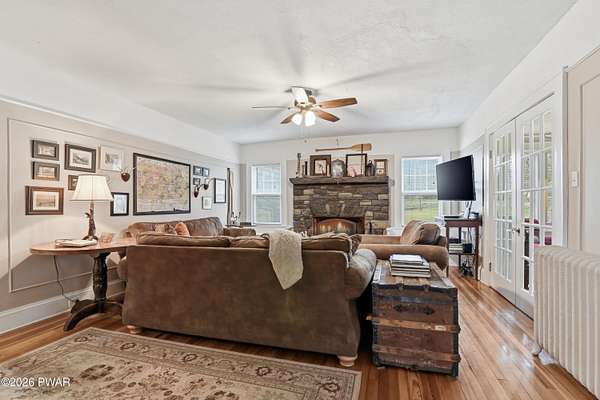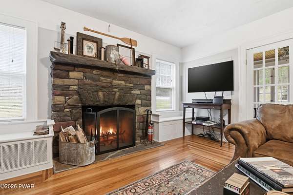 The 1925 Cottage -- a true standout, fully renovated and restored Gumble home that captures the kind of character rarely found. Set on 1.69 acres with no HOA, this 4-bedroom, 2.5-bath property features original detail with thoughtful updates throughout. Inside, stunning hardwood floors, custom trim work, and a spacious dining room anchor the home, while the cozy living room features a wood-burning stone fireplace & beautiful staircase. The kitchen is finished with stainless steel appliances and stone countertops, and a separate library with paned windows offers a quiet, light-filled retreat. The primary bath is designed with a soaking tub and separate tile shower. Step outside to a spacious backyard with a fire pit--perfect for entertaining or unwinding. Major systems including plumbing, septic, and boiler have been upgraded, along with two-zone central air for summer season comfort. A covered porch and 2-car garage complete the property. Being offered fully furnished, this is a turnkey opportunity with character, land, and flexibility.