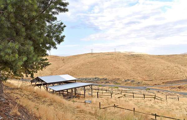 The ultimate property for horse enthusiasts looking for privacy! Beautiful views of the Snake River, sunsets and wildlife. Barn with foaling stall and tack room. Shop with drive-through doors, large riding arena. Second hay barn below provides three frost-free spigots and access to pasture. Wide open view from spacious garden area plus plentiful fruit trees in the backyard and additional outbuilding used for an art studio great for enjoying the view or using as storage. Newer heat pump, furnace and two newer water heaters. New roof in 2023, indoor pool, sauna and wiring for hot tub. High efficiency well has no online history but has never had problems for current owner. Neighboring wells are 340,-350' deep, 40-50 gpm. The county has confirmed this property could be split into 5 ac minimums. 56.01 acres, new survey to be completed prior to closing.
