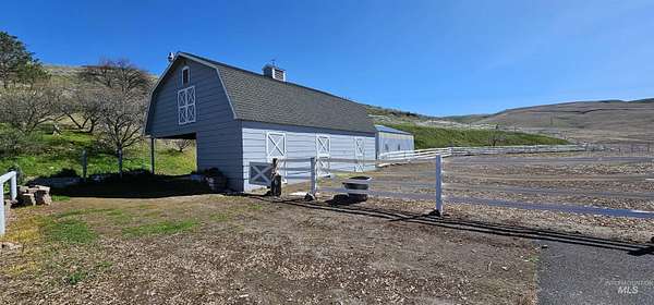 The ultimate property for horse enthusiasts looking for privacy! Beautiful views of the Snake River, sunsets and wildlife. Barn with three stalls, one a larger foaling stall and tack room with observation into foaling stall. 29 x 22 shop with drive-through doors, 233 x 125 riding arena. Second hay barn below provides three frost-free spigots and access to pasture. Wide open view from spacious garden area plus plentiful fruit trees in the backyard and additional outbuilding used for an art studio great for enjoying the view or using as storage. Newer heat pump, furnace and two newer water heaters. New roof in 2023, indoor pool, sauna and wiring for hot tub. High efficiency well has no online history but has never had problems for current owner. Neighboring wells are 340,-350' deep, 40-50 gpm. The county has confirmed this property could be split into 5 ac minimums.