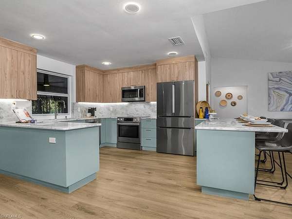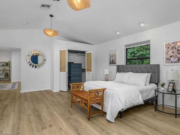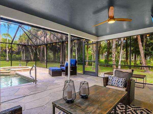SIGNIFICANT PRICE REDUCTION!! Discover the perfect balance of modern sophistication, comfort, and peaceful privacy in this move-in-ready, single-level home set on 1.59 acres in the highly desirable Logan Woods neighborhood. Thoughtfully updated throughout, this home features a stunning European-inspired kitchen with custom cabinetry, Bosch appliances, and elegant dolomite countertops. The spacious primary suite includes two walk-in closets, a movie projector and screen for cozy nights in, and a spa-like ensuite bath with a large tiled walk-in shower with dual shower heads, dual vanities, and a Toto toilet. Perfect for family or guests, two additional bedrooms are privately situated on the opposite side of the home, accompanied by two beautifully remodeled bathrooms with striking tile work. Step through French doors to your screened outdoor living area-complete with no-see-um screening, a heated saltwater pool and spa, outdoor TV, and new fans for year-round comfort. Whether entertaining friends or relaxing in total privacy, this space was designed for easy Florida living. Additional highlights include: fresh exterior paint, energy-efficient impact-resistant doors and windows, a whole-house generator, well pump with reverse osmosis system, and a fully fenced yard with a gate. The long private driveway, mature citrus trees, and expansive yard create a serene retreat ideal for children and pets. Meticulously maintained and upgraded-ask for the comprehensive List of Recent Improvements. Logan Woods in one of Naples' most sought-after acreage neighborhoods where family, freedom, and Florida living come together. With no HOA restrictions, there's land for pets to play, kids to explore, and room for all your hobbies - from RV's to boats to future workshops or guest home. Prime location with quick access to I-75, top-rated schools (all within 3 miles), and Naples' world-renowned beaches just 8 miles away.