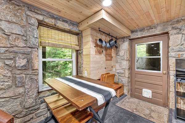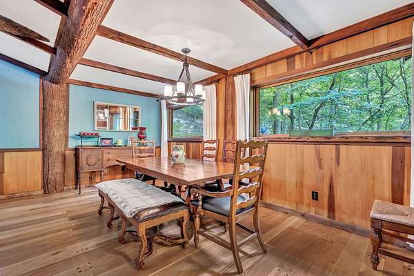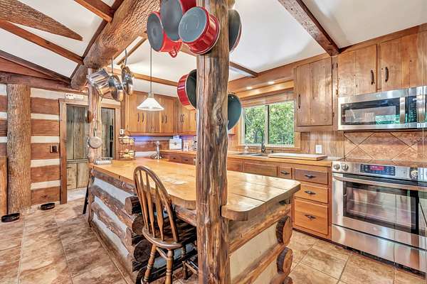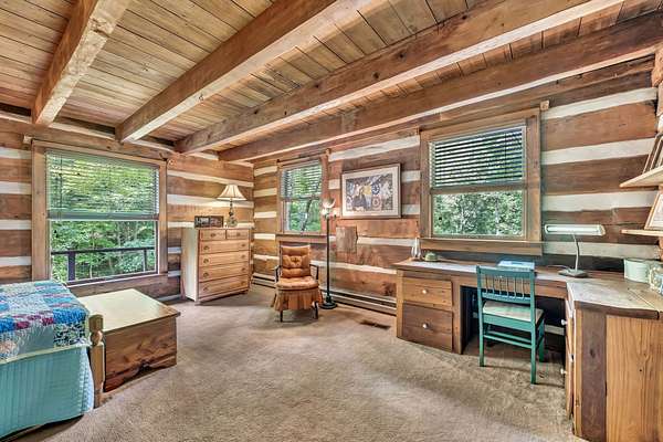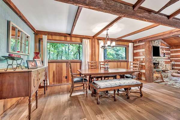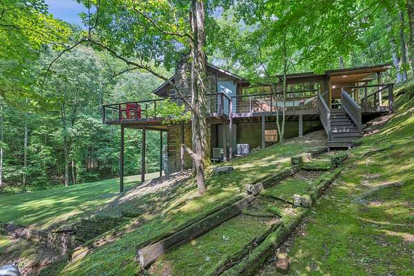 Experience the perfect blend of history and comfort in this unique and charming home, that was originally a log cabin that was carefully relocated and fully renovated 46 years ago from Bull Run Rd and has been made into a truly magical forest oasis. . Nestled on 55 acres of this most serene setting with beautiful views of Little Marrowbone Creek, this home offers timeless character alongside modern convenience.