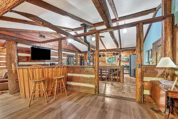 Relax on the expansive wrap-around porch and take in the sights and sounds of nature, or enjoy the benefits of both city and spring water access. Whether you're sipping coffee at sunrise or winding down to the sound of the creek, this peaceful retreat is a rare find that offers the best of both worlds--rustic roots and refined living.