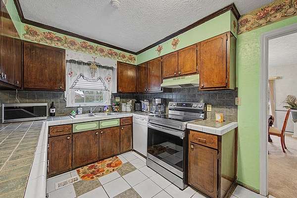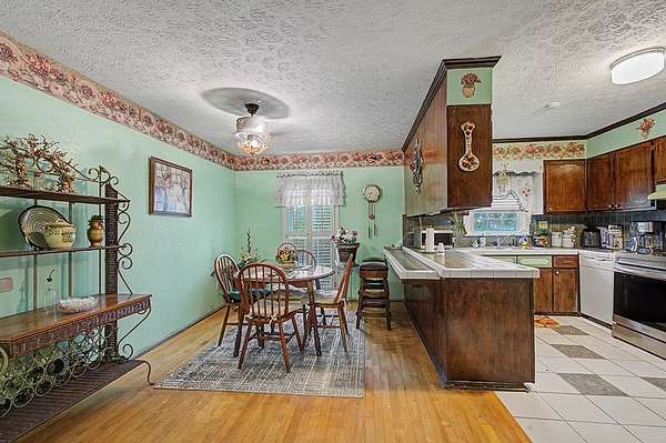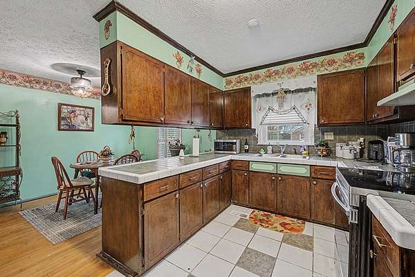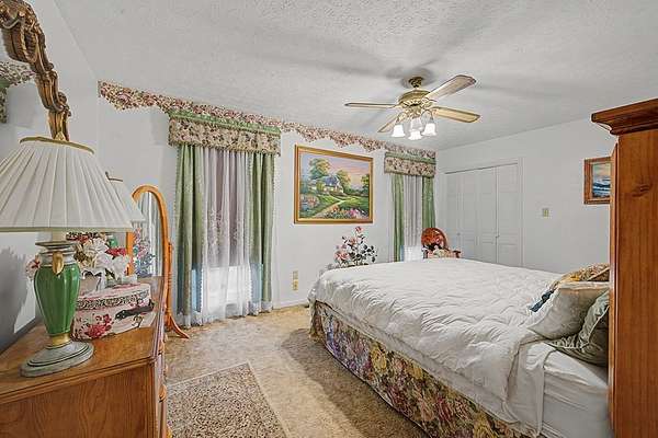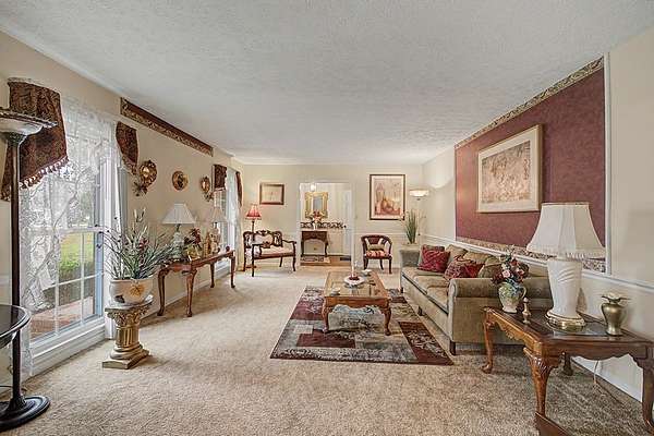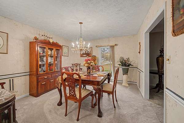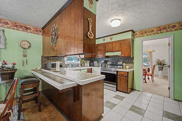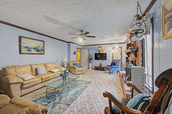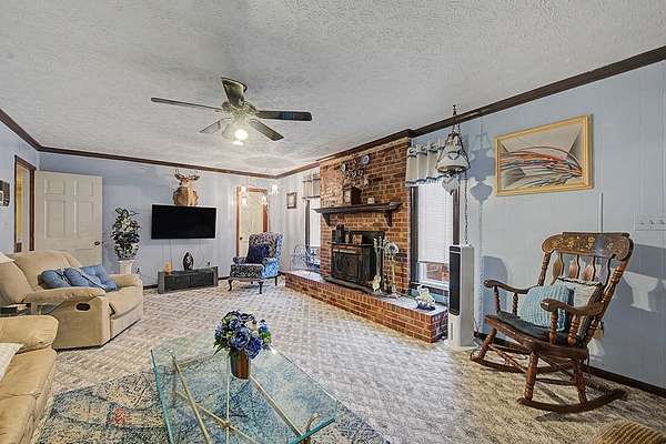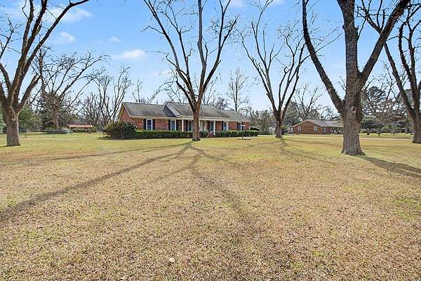 This beautiful all-brick home offers nearly 2,500 square feet of living space with 3 bedrooms and 2.5 baths — and it is SUPER roomy with generously sized rooms throughout! The spacious main living room features a cozy fireplace and plenty of space for gathering. The eat-in kitchen is full of charm with warm stained wood cabinetry, tiled countertops, and an updated stainless stove. In addition, the home offers a separate formal living room and a dedicated dining room, providing excellent flexibility for entertaining, a home office, or additional sitting space. All bedrooms are impressively sized with ample closet space. The large laundry room includes extra storage for added convenience. Step outside to enjoy the open patio area overlooking a MASSIVE fenced backyard — perfect for kids, pets, gardening, or entertaining. A large storage building provides additional space for tools, equipment, or hobbies. Situated on a beautiful 2-acre lot with plenty of room to roam, this property offers privacy, space, and endless potential!