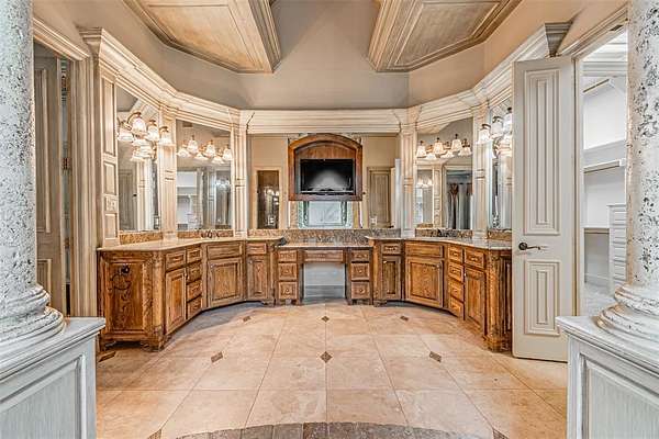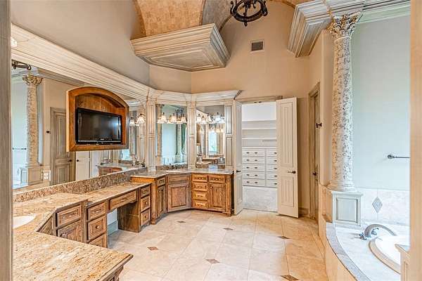 - Built-In Features, Cable TV Available, Cathedral Ceiling(s), Chandelier, Decorative Lighting, Double Vanity, Flat Screen Wiring, Granite Counters, High Speed Internet Available, Kitchen Island, Multiple Staircases, Vaulted Ceiling(s), Wainscoting, Walk-In Closet(s), Wet Bar