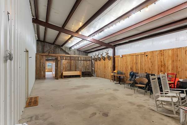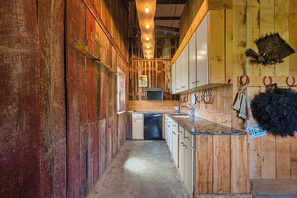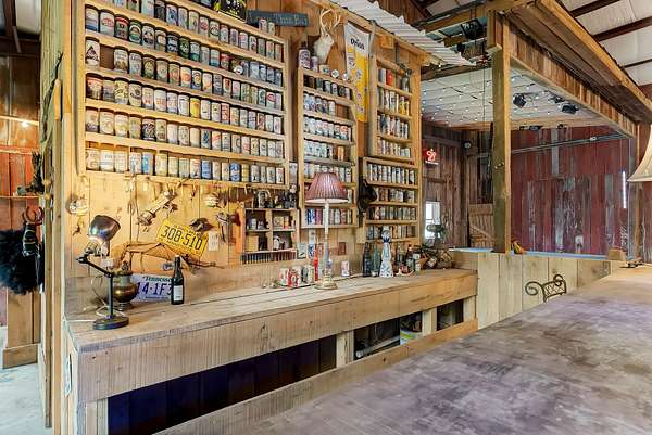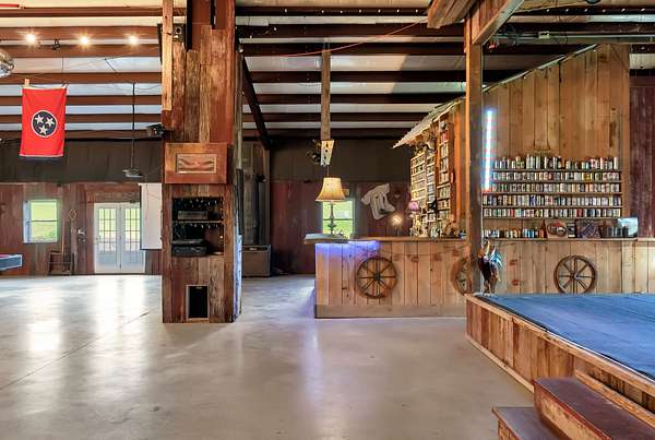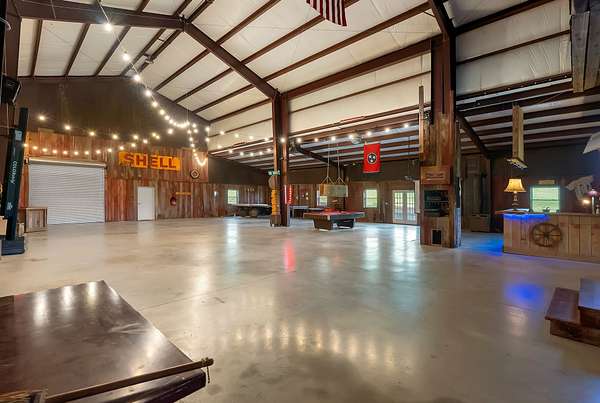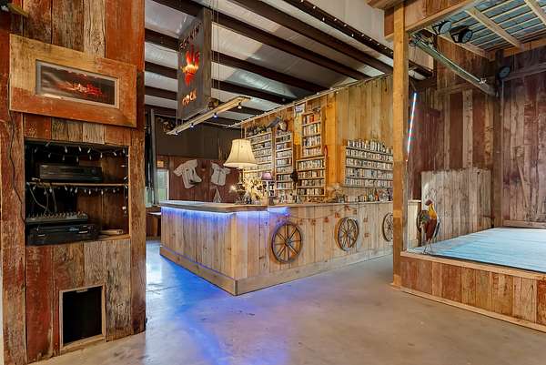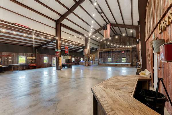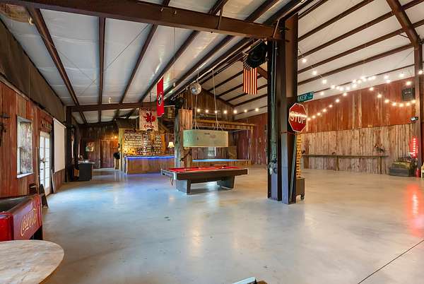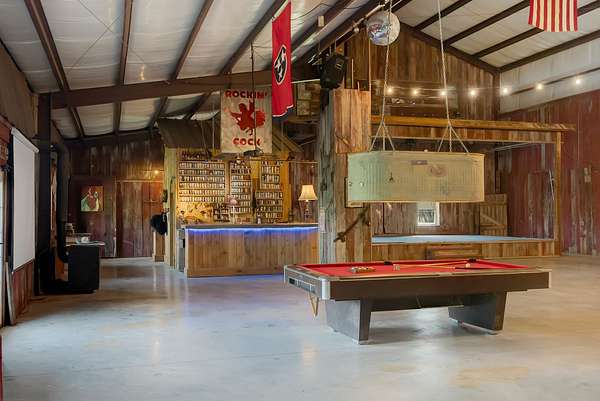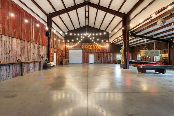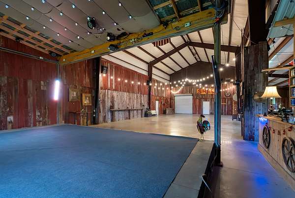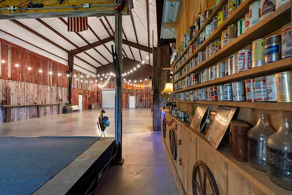 A standout feature of the property is the impressive 9,000 sq ft entertainment barn, thoughtfully designed for hosting unforgettable gatherings. One side of the barn showcases reclaimed barn wood walls, a built-in bar, kitchenette, and a full stage complete with professional audio and lighting, creating an incredible venue for private events, celebrations, or live music nights.