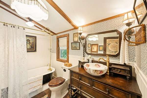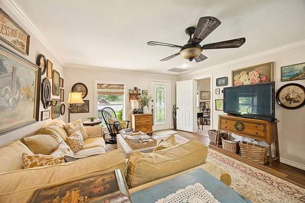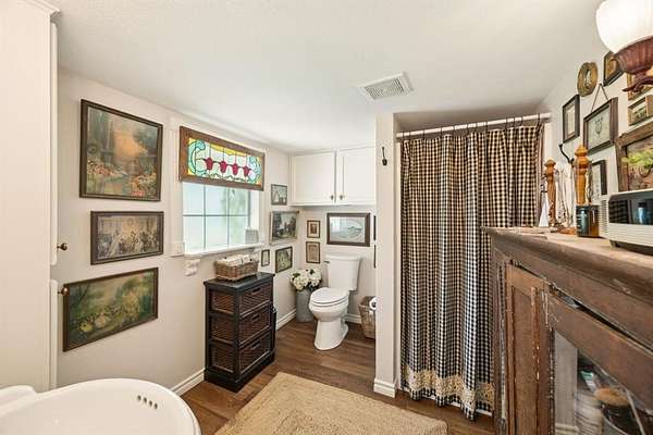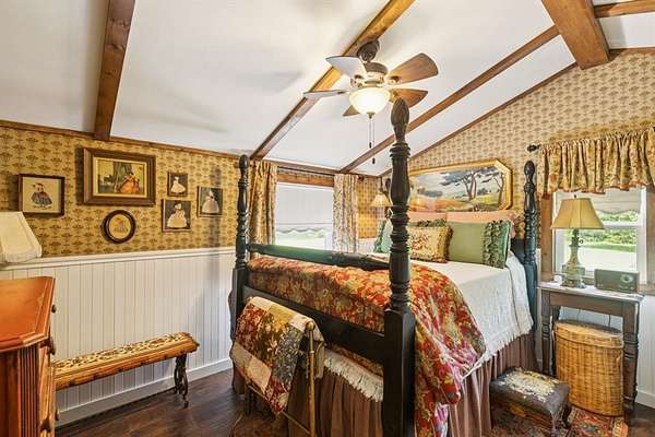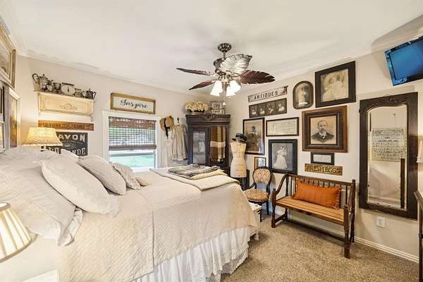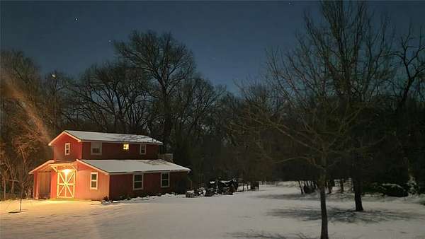 Welcome to Honey Creek Farm, a hidden gem with two homes nestled on 10+ unrestricted acres near historic downtown McKinney, the new HEB and Signature Kroger. This ag exempt, immaculate estate is home to award-winning honeybees who won first place at the State Fair of TX in '22 and '24. (New owners will be provided options for keeping the exemption.) A magical retreat with towering pecan and oak trees, a year-round creek, wooden bridge, and stone seating area perfect for peaceful strolls and quiet reflection. Rich with history and truly unique in Collin County, it includes meandering trails that wind through the woods beside the creek, a perfect escape. The main house is meticulously maintained with two bedrooms, two living areas, a full bath, 2-car garage, RV hookup, quaint garden shed, large deck and patio, new roof, plus brand new flooring and fresh paint throughout, filled with natural light and charming character. The new red barn with AC has tons of storage, covered RV space, and a carefully curated English cottage above-a storybook retreat perfect as guest quarters, mother-in-law suite, or short-term rental. It's beautifully landscaped with a fire pit creating a cozy spot for family and friends. The scenic build site is ready for your dream home or boutique venue, with a winding driveway, water, electric, new septic and extra parking for guests already in place. The property is partially fenced and suited for horses or other farm friends. A rare opportunity to own this pristine countryside in desirable McKinney-the possibilities are endless!